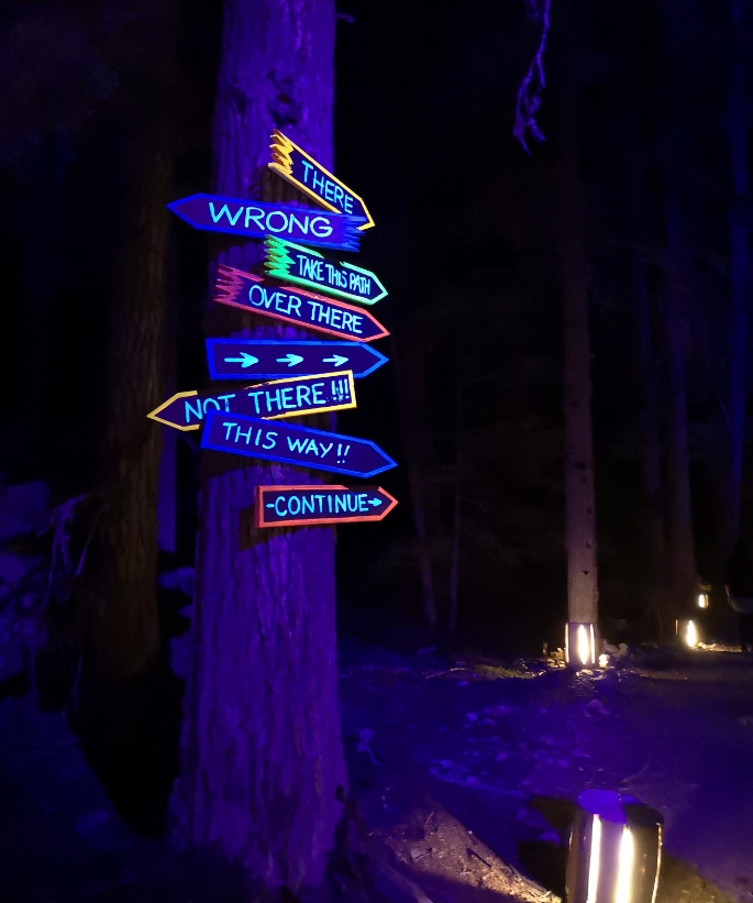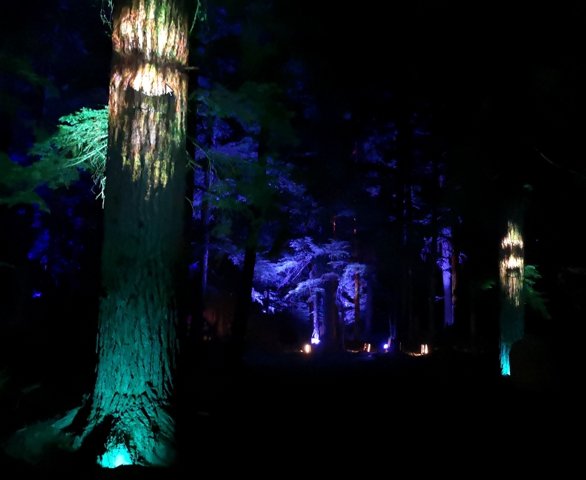 Dann brach die Nacht heran. Sehr schnell war es stockdunkel. Plötzlich tat sich ein Licht auf und der Wald verwandelte sich in eine Märchenlandschaft.