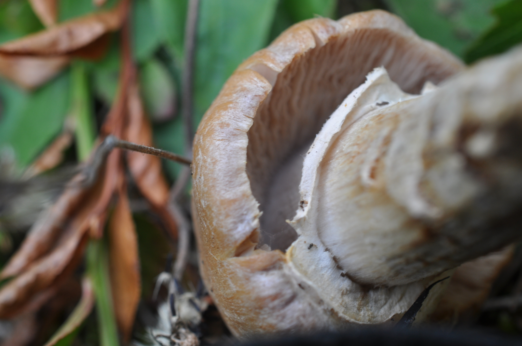 ca. 10cm lang, faserig, weißlich bis grau-bräunlich, mit häutiger dünner Manschette.