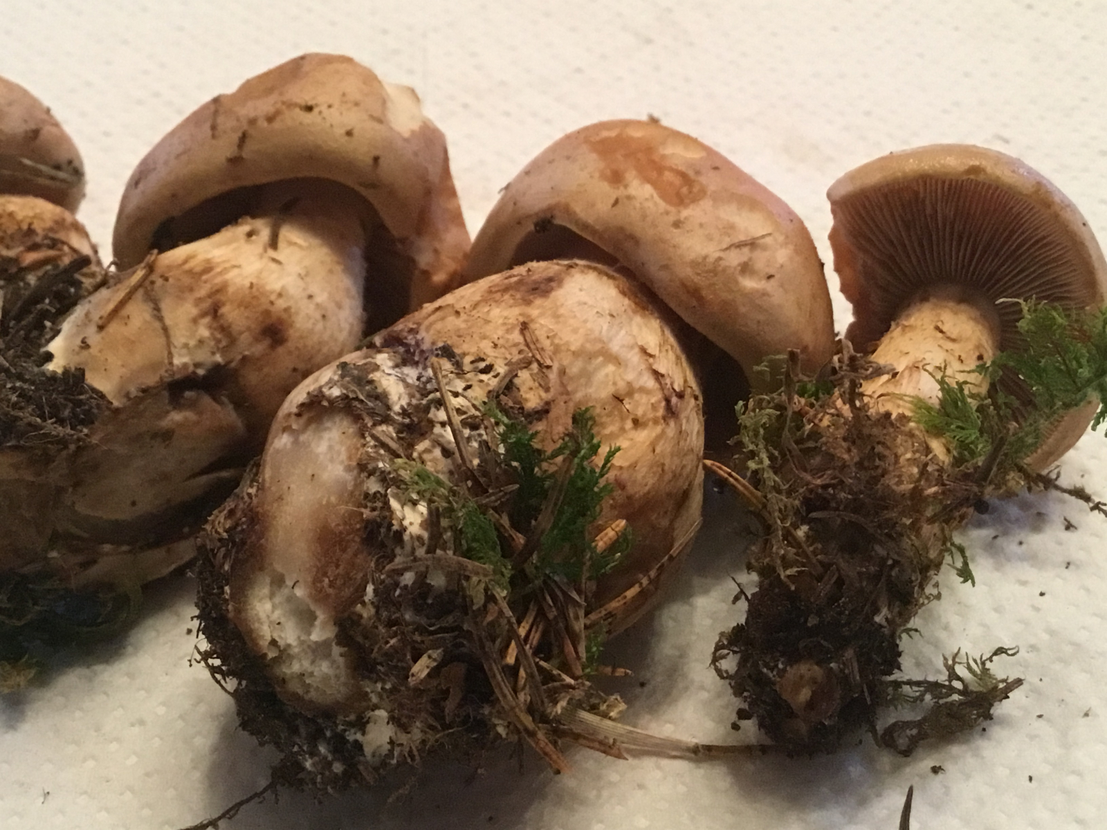 heute am späten Nachmittag habe ich diese Pilze am Wegrand gefunden. Zunächst dachte ich an Steinpilze, da sie auch eine hellbraune Kappe besitzen, aber leider waren es keine Röhrlinge, sondern Pilze mit Lamellen. Beim kleineren Pilz kann man die Unterseite gut sehen.