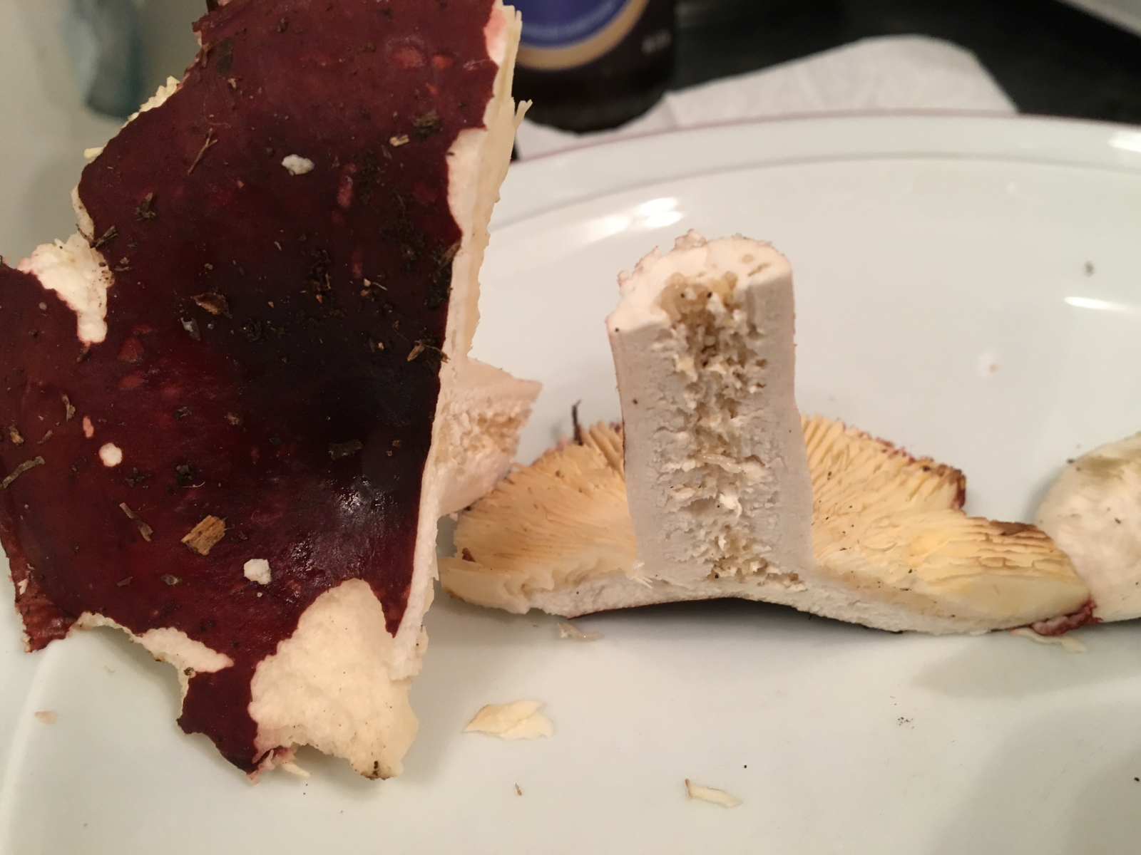 Bei Täublingen testet man die Schärfe, indem man mit der Zunge kurz über die Lamellen leckt. Bei scharfen Täublingen fängt es dann an leicht zu prickeln. Aber mir ist das auch schon passiert, dass nach dem Verkosten des Heimtückischen Täublings die Zunge taub war und ich im Spiegel nach der Brandblase auf der Zunge geschaut habe