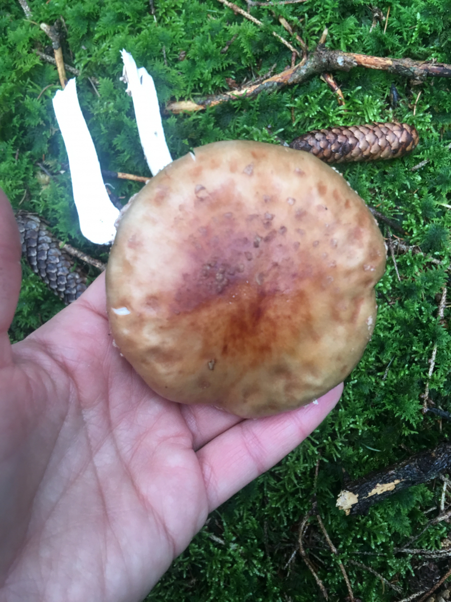 Heute war’s wieder sehr mager, 3-4 Braunkappen, 2-3 Semmelstoppel, ein Birkenpilz und eine Rotkappe. Für 3,5h Tour echt wenig!
