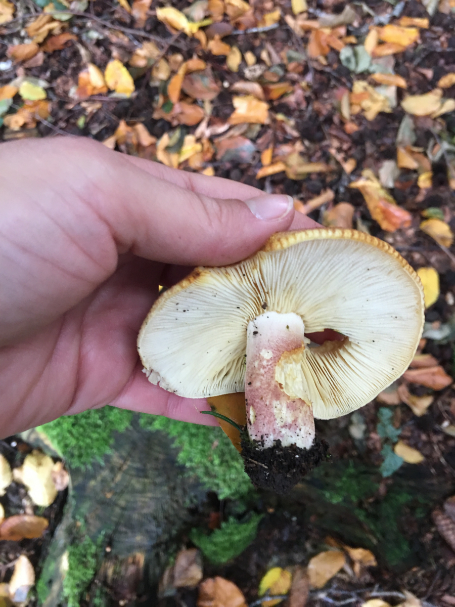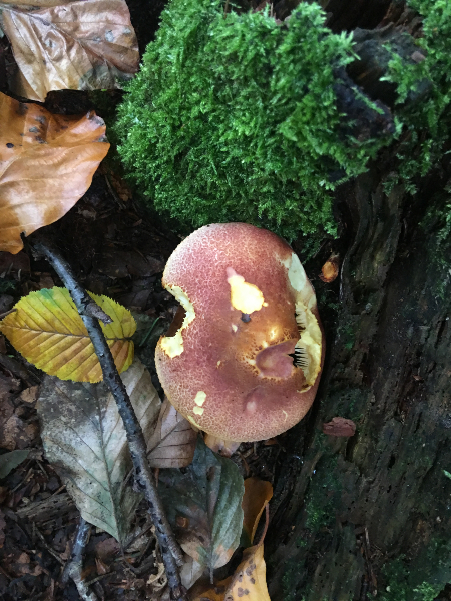 Ich krieg die Panik bei dem Farbspektrum (Russula cyanoxantha) grün, braun, violett und blau. Obwohl ich schon einmal einen erfolgreich identifiziert habe - aber der war leicht. Der hatte keine Grüntöne. Ein schönes Violett. Und Geschmack ok.