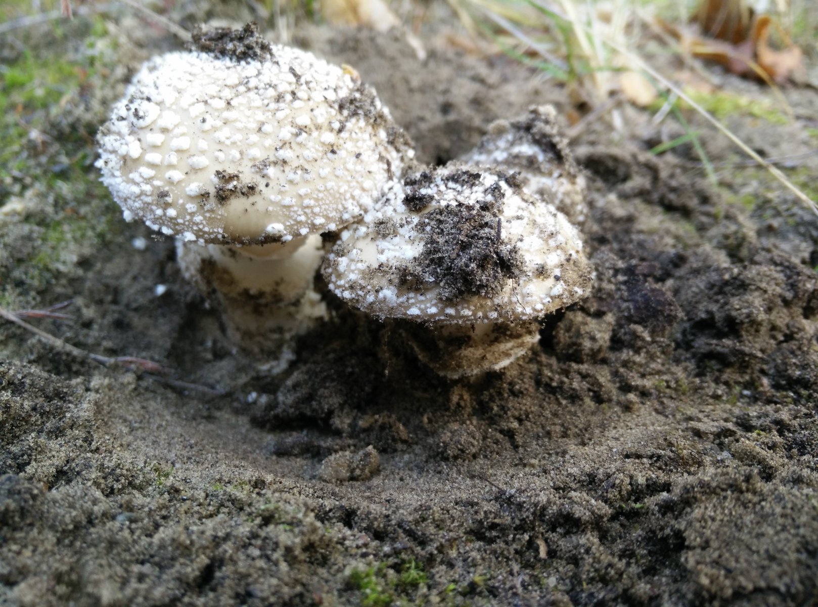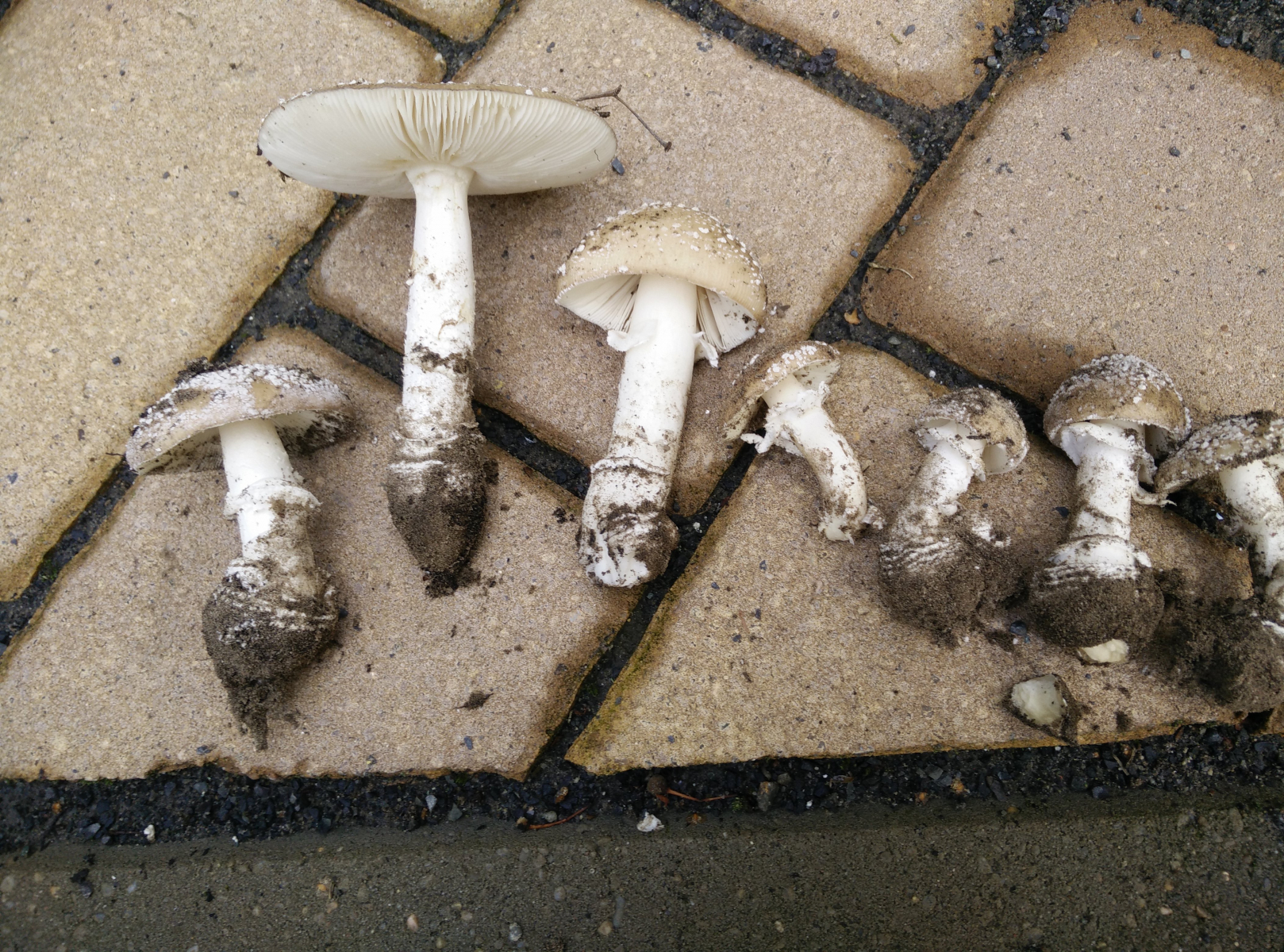 In unserem Vorgarten (Sand und etwas Mutterboden, Nordseite vom Haus, Brandenburg nördlich von Berlin) sprießen Pilze, die ich als Anfänger als Pantherpilze einordnen würde - Normalerweise würd ich die schon für die Optik stehen lassen, aber mit zwei Klein(st)kindern würde ich das Risiko eines tödlich giftigen Pilzes dann im Zweifelsfall nicht eingehen und sie entfernen... Daher die Bitte um einen Anhaltspunkt: