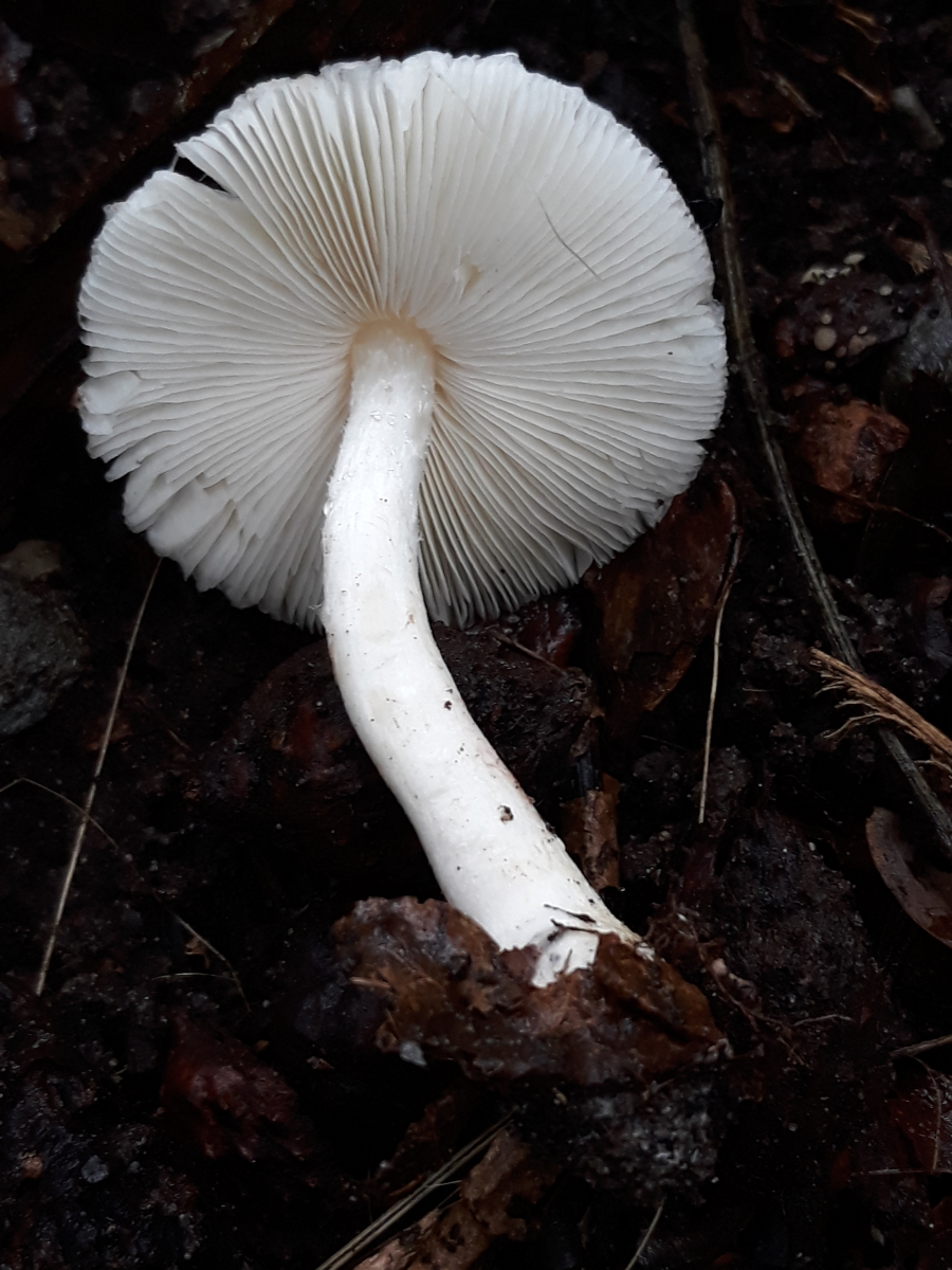 Der Buckel des Pilzes war ockerlich gelb, was man auf den Fotos nicht so gut sieht. (Hatte nur ein Handy dabei). Der Stiel war flüchtig beringt und ich habe ihn bei der Entnahme leider auch zerdrückt.