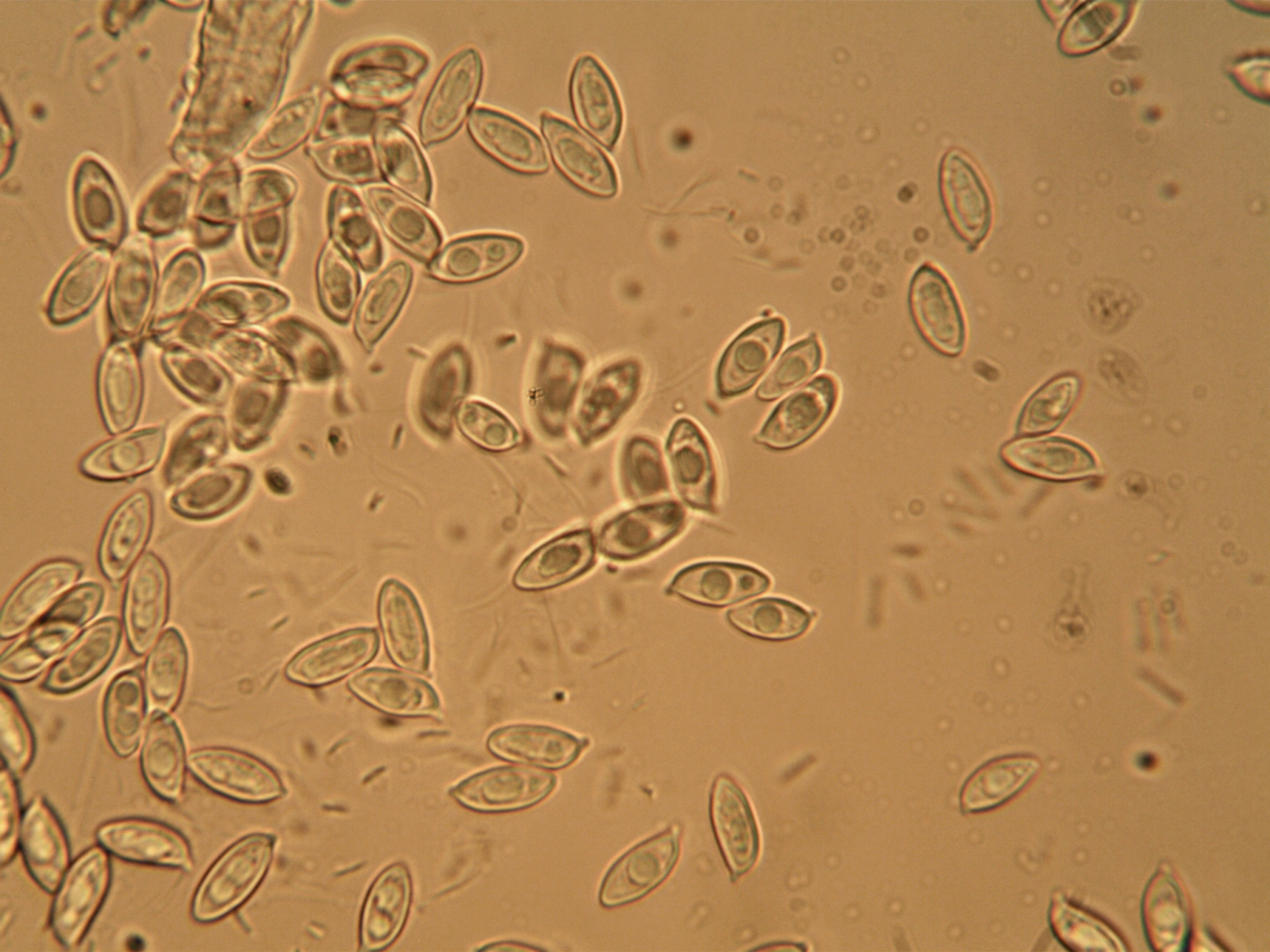 Meine Sporen maßen von 8,2-10,2X4-4,2. Lepiota alba müsste eigentlich größere Sporen haben.