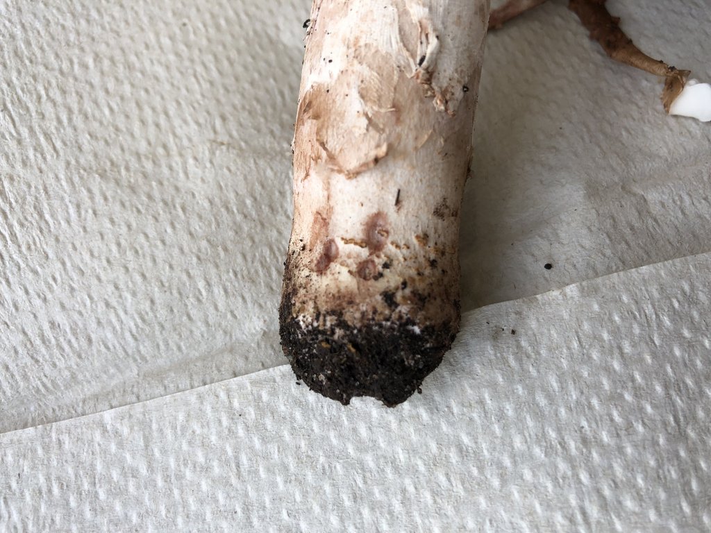 Stiel oberhalb des ehemaligen Ringes gerieft, Knolle nur leicht ausgeprägt