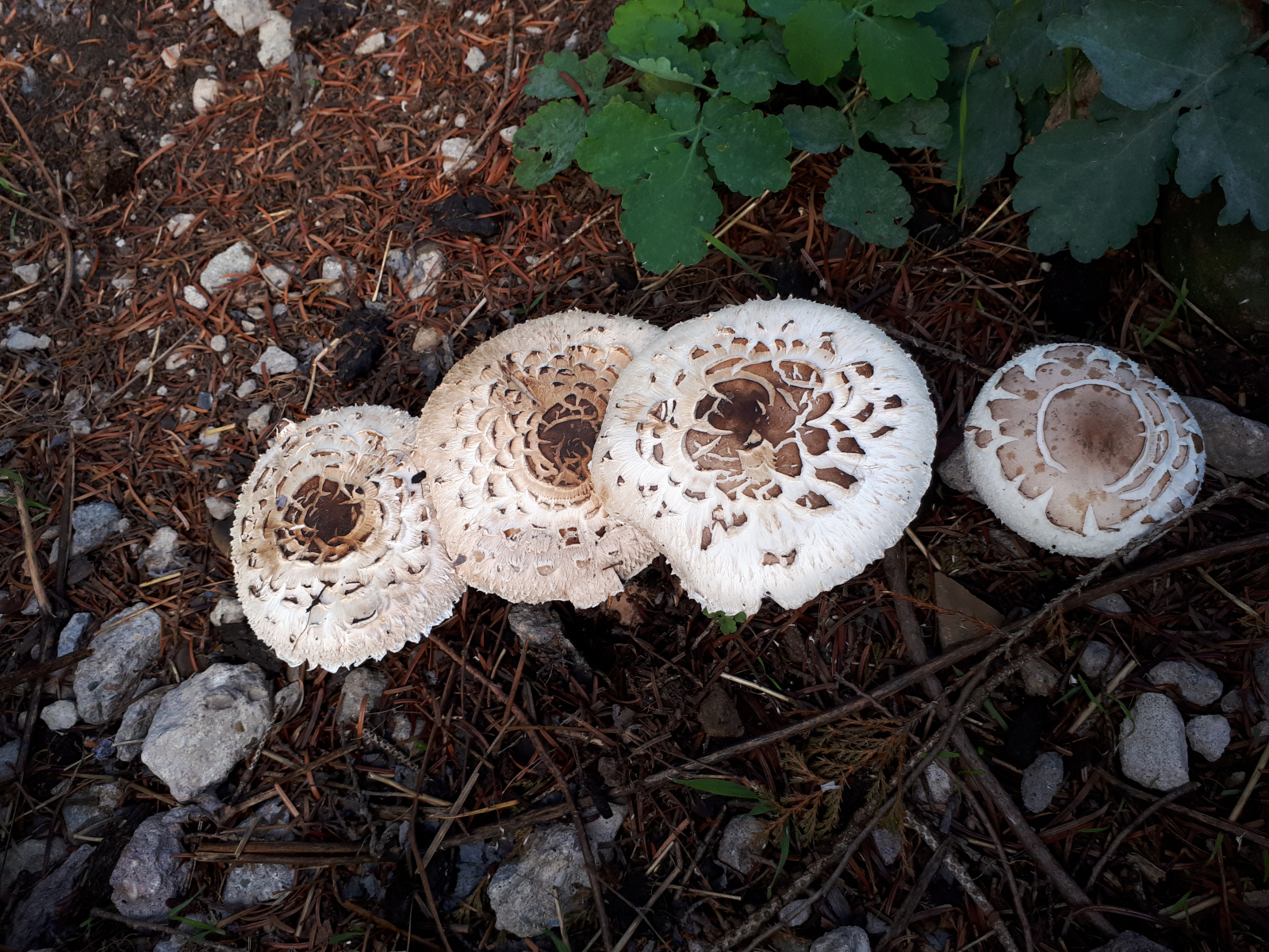 . Ich tippe spontan auf Ackerschirmpilze (Macrolepiota excoriata). Stören tun sie soweit nicht, das einzige Problem ist, dass sie jetzt nach dem Regen zuhauf mitten im Schildkrötengehege sprießen und ich bisher nicht beurteilen konnte, ob Landschildkröten dem Geschmack von frischen (Gift-?)Pilzen zugeneigt sind.