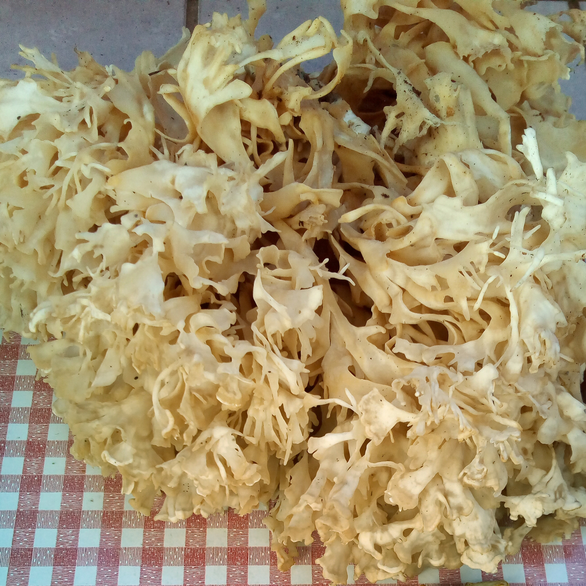 Die Glucke habe ich in der Nähe von Fichten gefunden und ging davon aus, dass es eine Krause Glucke war. Ca. 20m weiter standen einige Kiefern. Erst später erfuhr ich, dass es eine Breitblättrige Glucke gibt, die beim Kochen nach Waschpulver riechen soll und die bei Fichten und Tannen wächst. Die Glucke duftete angenehm beim Kochen.