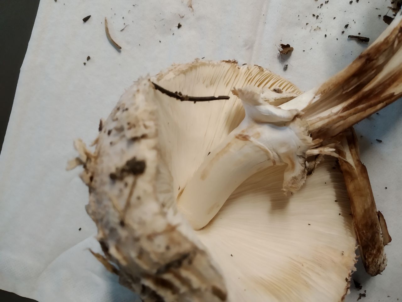 Bei deinen Fotos - und ich betone "Fotos" - wäre ich jetzt nicht auf den Ch. brunneum gekommen, obwohl ich klar die Knolle sehe, schief und mit etwas Erde, aber die fetzenartige Huthaut ordne ich anders zu, und mir ist die Musterung zu hell und zu gleichmäßig. Fragiler Ring wäre für den Ch. rachodes normal - und wie du das Umfeld beschreibst könnte sich ein Safranschirmling eingenistet haben. Also eine Gegenposition zu Pablo. 😅. Hoffentlich zahlt er mir das nicht heim...