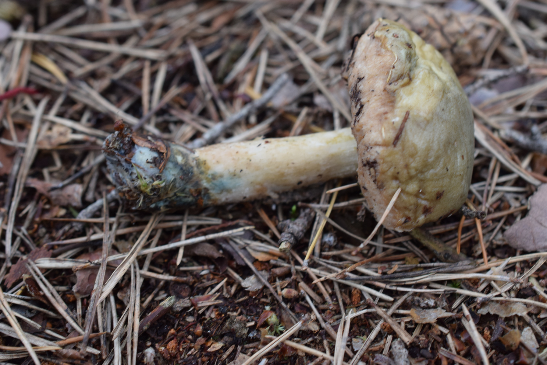 das sollte Leccinum cyaneobasileucum sein. Ich habe solche Exemplare auch schon gefunden und von einem Experten der Gattung bestimmen lassen weil ich die nicht einordnen konnte.