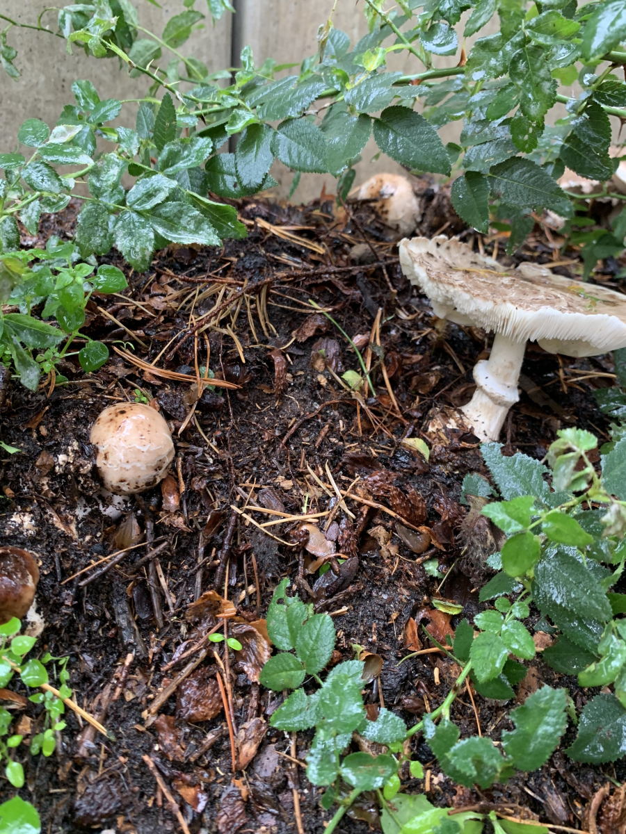 Pilze im eigenen Garten auf Altholz- und Gartenabfallhaufen
