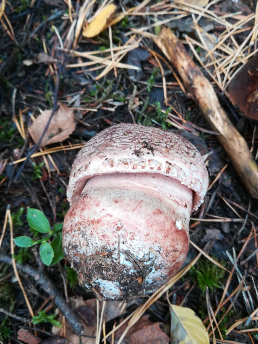 Das ist ein junger und nicht madiger perlpilz. Dieser hat sogar deutliche rottöne.