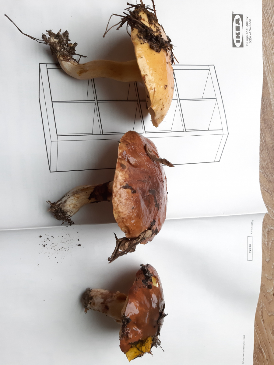 Beim Röhrling mit dem hellen Hut kann Goldröhrling schon stimmen, aber dann hätten da auch Lärchen stehen müssen. Standen die da auch? Bei den Röhrlingen mit braunem Hut wäre ich auch bei Butter-Röhrlingen.