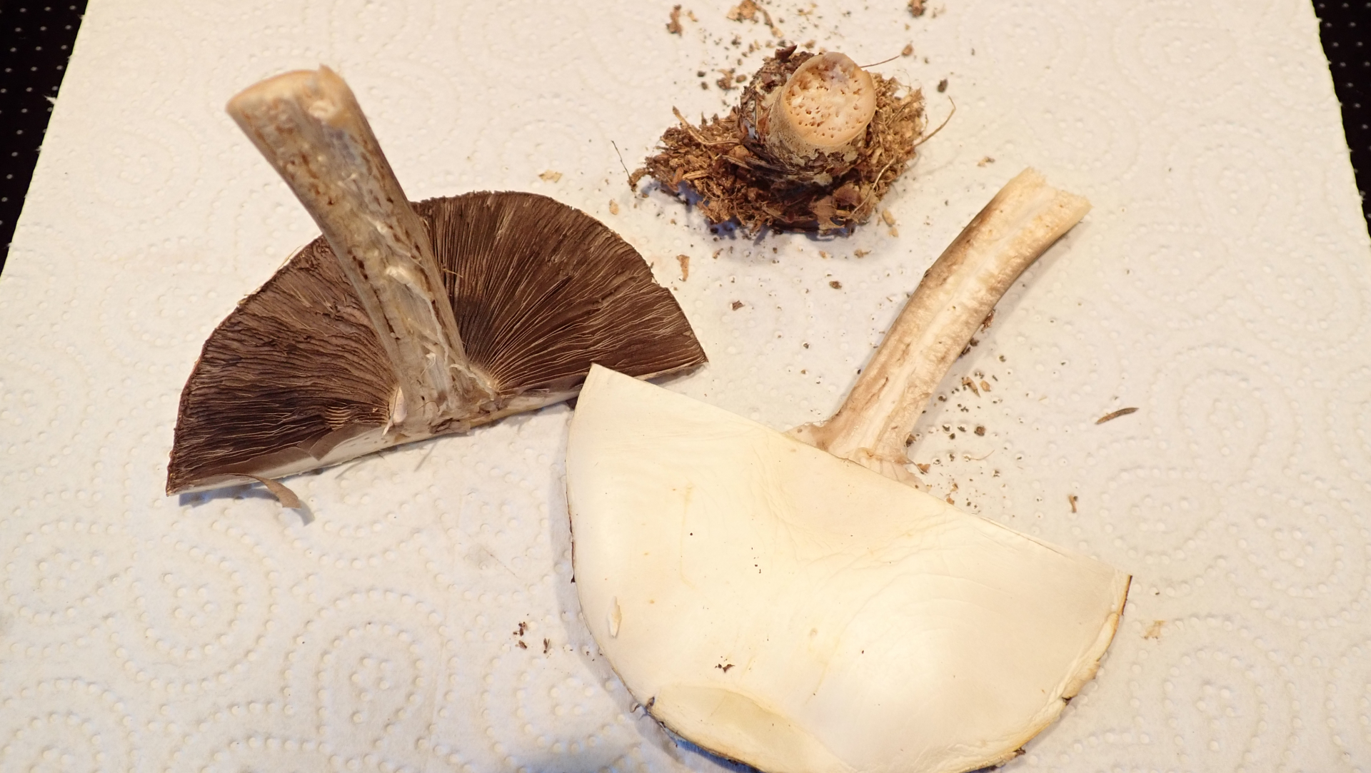 Ich habe die Pilze jetzt mal einzeln aufgenommen und zerschnitten. Vielleicht kann man dann die Art besser bestimmen?