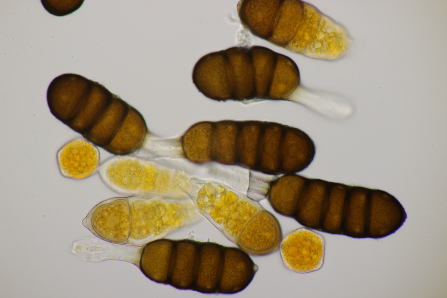 5. Ein Fund auf Kaninchendung. Bei Facebook wurde ich auf Pseudombrophila bulbifera hingewiesen. Es gibt wohl noch eine weitere Pseudombrophila mit runden Sporen, P. dentata, die aber nur von ihrem Entdecker Boudier gefunden wurde und danach nie wieder. Heute Abend werde ich mal versuchen, den Pilzen reife Sporen zu entlocken, die ich dann auch messen kann.
