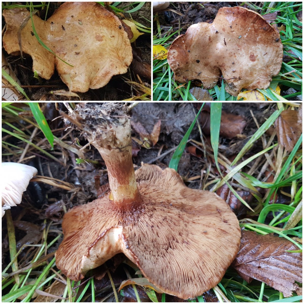 Den letzten Pilz halte ich eher für den Wolligen Milchling. Schneide / kratze ihn nächstes Mal mit dem Messer, bei Milchlingen kommt die Milch raus, die auch die Farbe an der Luft verändern kann (bspw. von weiß auf gelb, von weiß auf grünlich oder von karottenrot auf weinrot). Hier mein Bild vom Samstag von höchst wahrscheinlich einen Wolligen Milchling (hier ursprünglich gezeigt). Beachte bitte die milchenden "Kratzer" am FK links.