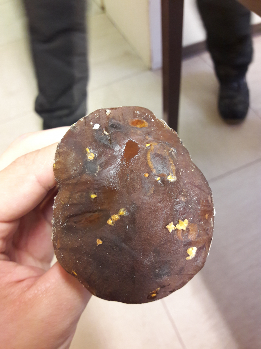 Die Pohren sind gelb und färben sich bei Druck dunkler.