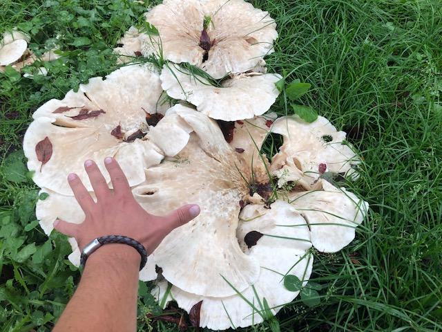 Hallo, habe heute nach der Rückkehr aus dem Urlaub einen Haufen großer Pilze unter unserer Pflaume entdeckt.
