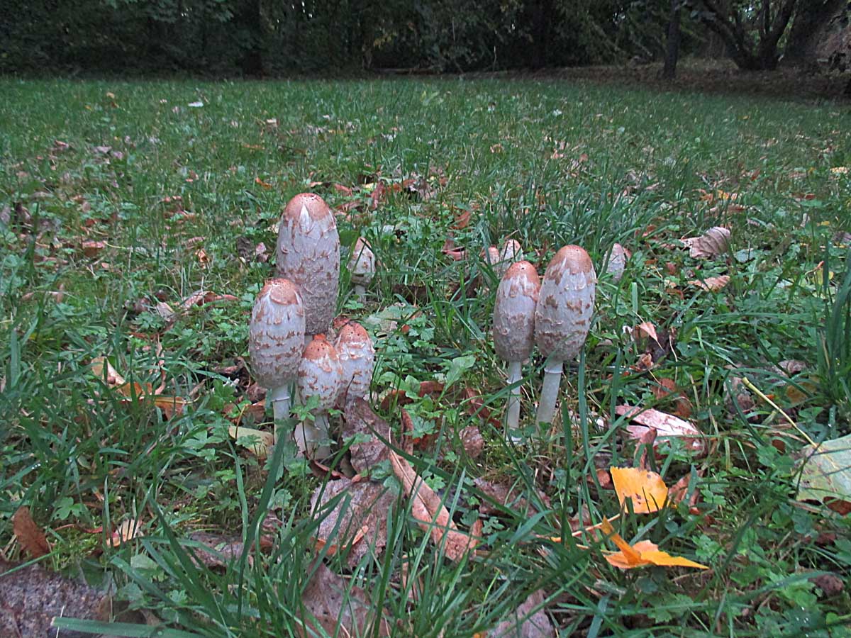 nachdem der vorhergesagte stürmische und regnerische Tag bei uns ausfiel habe ich heute das erste Mal seit meinem Unfall wieder einen Wald besucht. Zuvor erkundete ich noch das angrenzende Krankenhausareal. Neben den ungewöhnlichen Riesenschirmlingen gab es dort aber nur ein paar Flockis und Schopftintlinge.