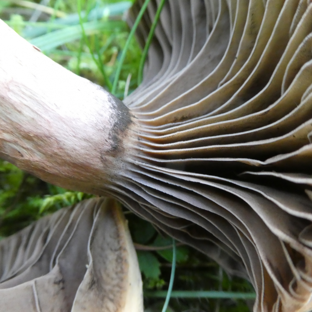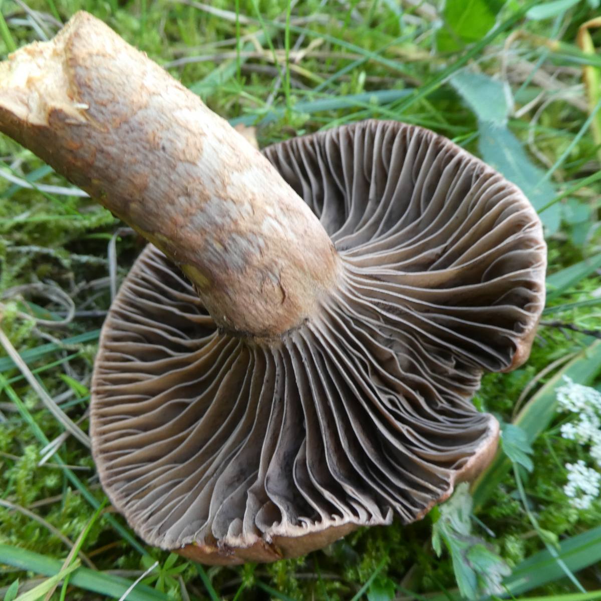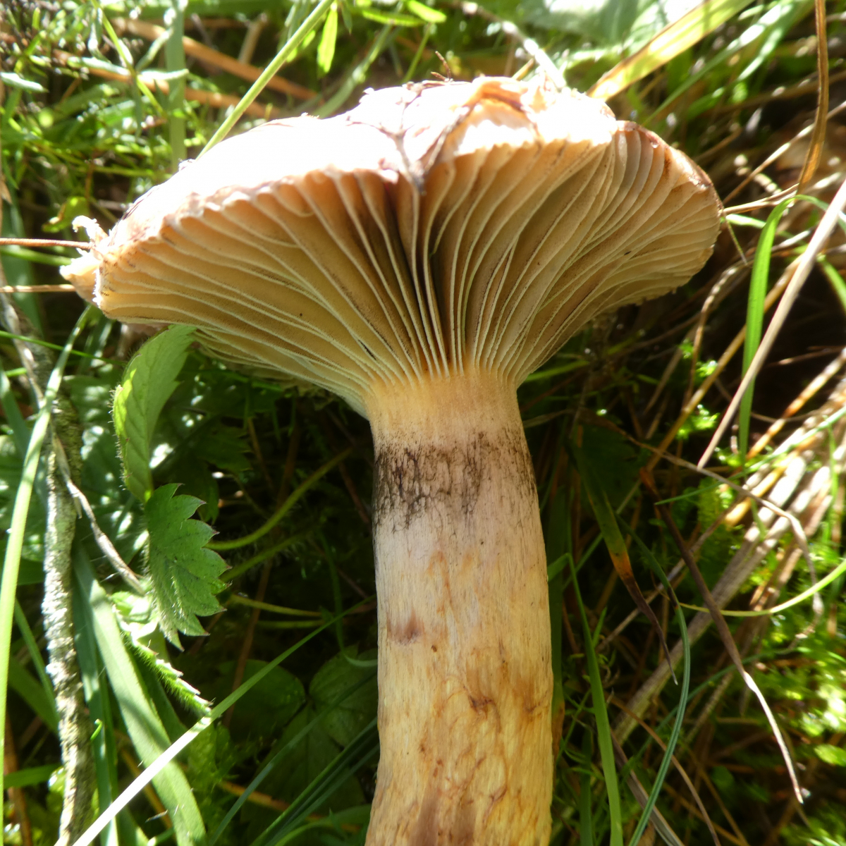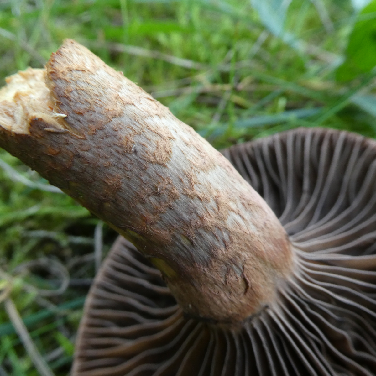 Pilz 1 fotografierte ich am 14.09.2019 im Altmühltal auf einem schmalen Pfad der einen Trockenrasenhang von einer Halbtrockenrasenwiese abgrenzt. In der Nähe standen Laubbäume (verschiedene Arten) und Nadelbäume, ich glaube Tannen oder etwas in diese Richtung, an eine Kiefer kann ich mich allerdings nicht erinnern, wäre aber denkbar. Mir fiel auf, dass der Hut keinen Buckel hatte und filzig finde ich ihn jetzt auch nicht aber auch nicht glatt. Ferner fand ich die Stiele recht ausgeprägt habe aber keine Ahnung, ob dies normal ist. An einen evtl. Geruch kann ich mich nicht mehr erinnern, allerdings ist mir leider der Stiel abgebrochen.