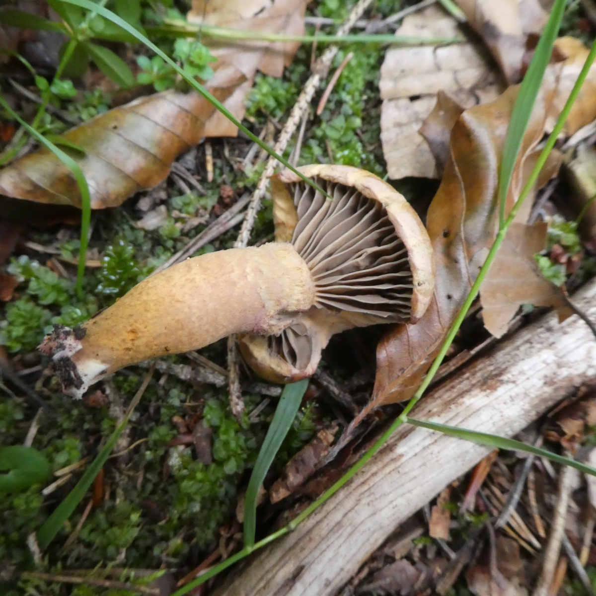 Pilz 3 fotografierte ich bereits ca. am 09.09.2019 in einem gänzlich anderem Habitat - mitten in einem Mischwald, dort neben Laubbäumen auch viele Fichten und etliche Kiefern. Hier bin ich mir auch nicht sicher, ob es sich um den Kupferroten Gelbfuss handelt oder vielleicht eher um den Filzigen zumal die Lamellen ja nicht gerade herablaufen .. wobei, filzig ist der Hut ja nicht gerade.