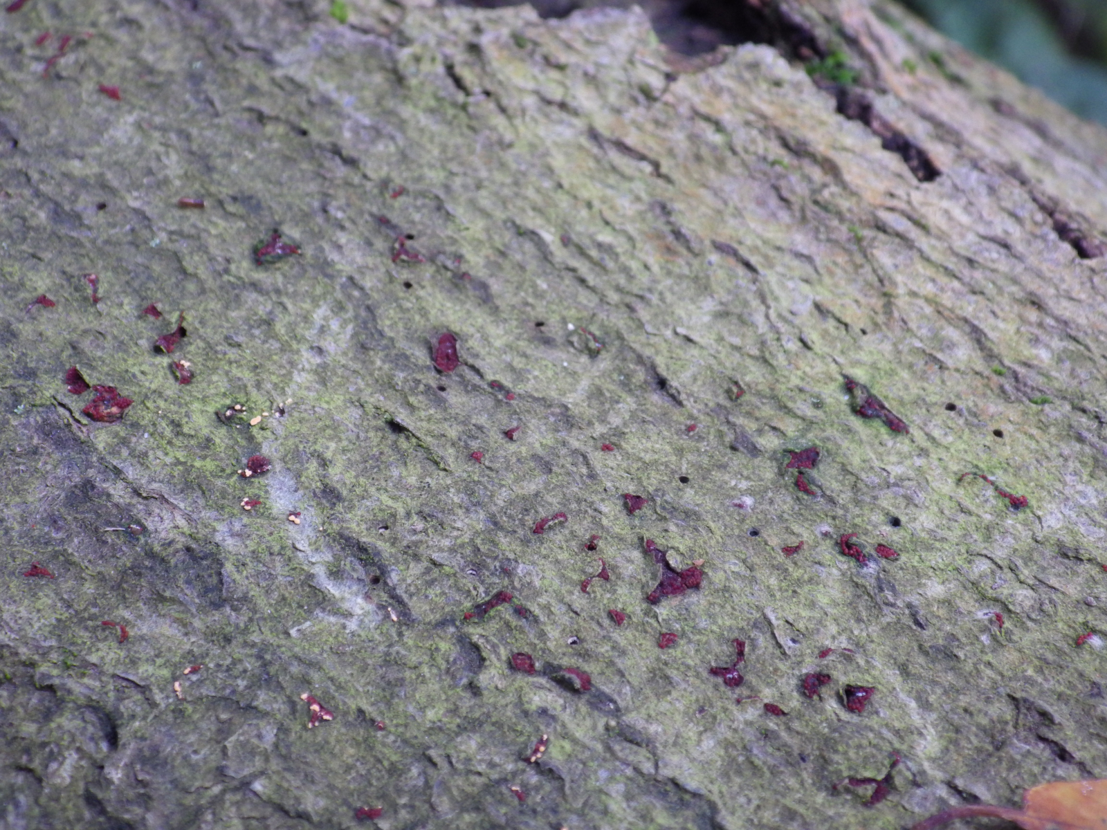 Auch auf einen gefällten Baumstamm, kann leider nicht sagen um welche Baumart es sich handelt, sehr kleine rote "Knöllchen", konnte ich nicht zu fassen kriegen:
