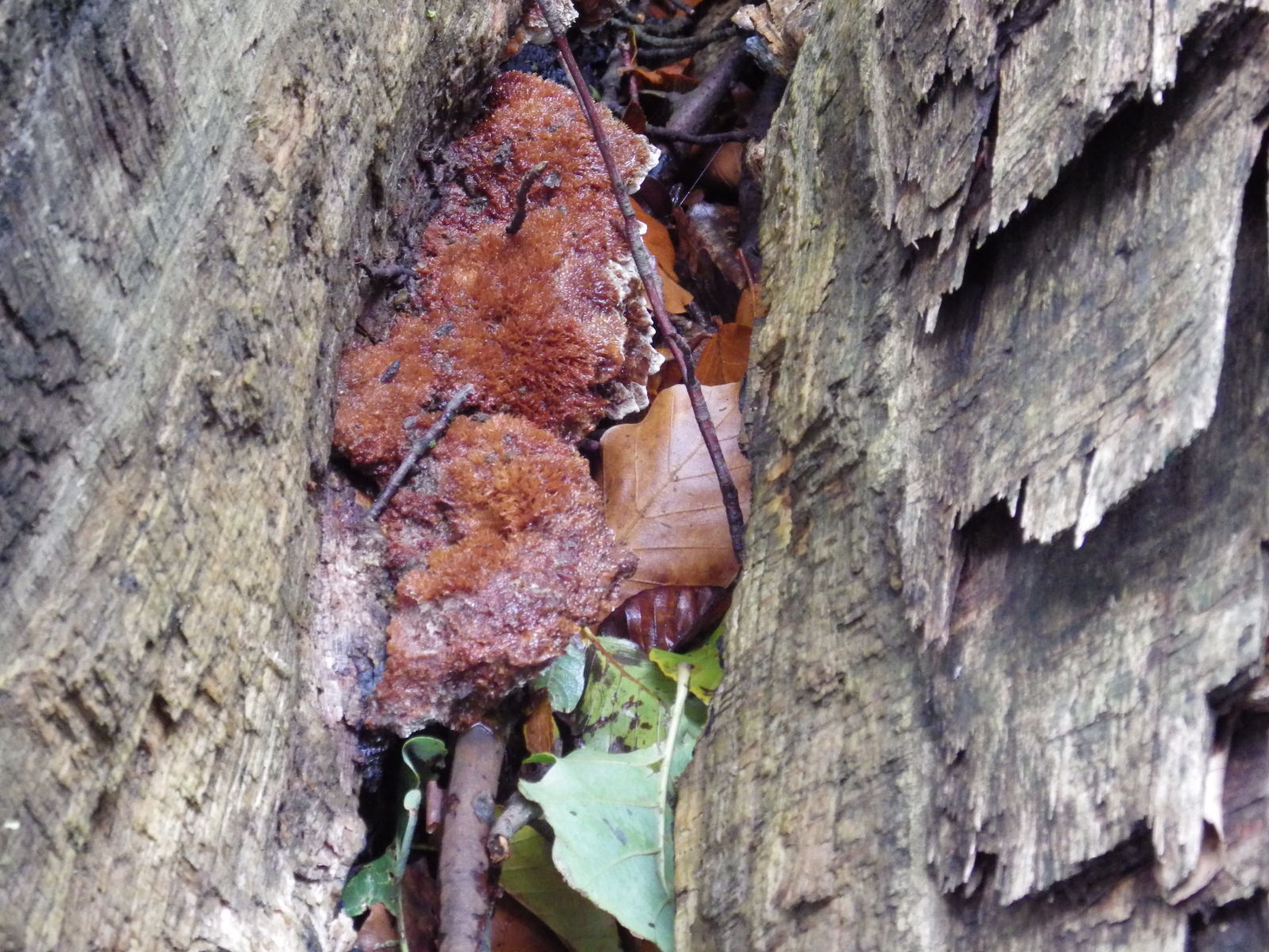 Innerhalb des gefällten Buchenstammes, rochen auch schwach nach Pilz: