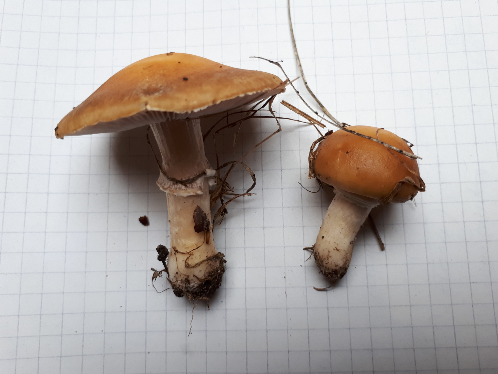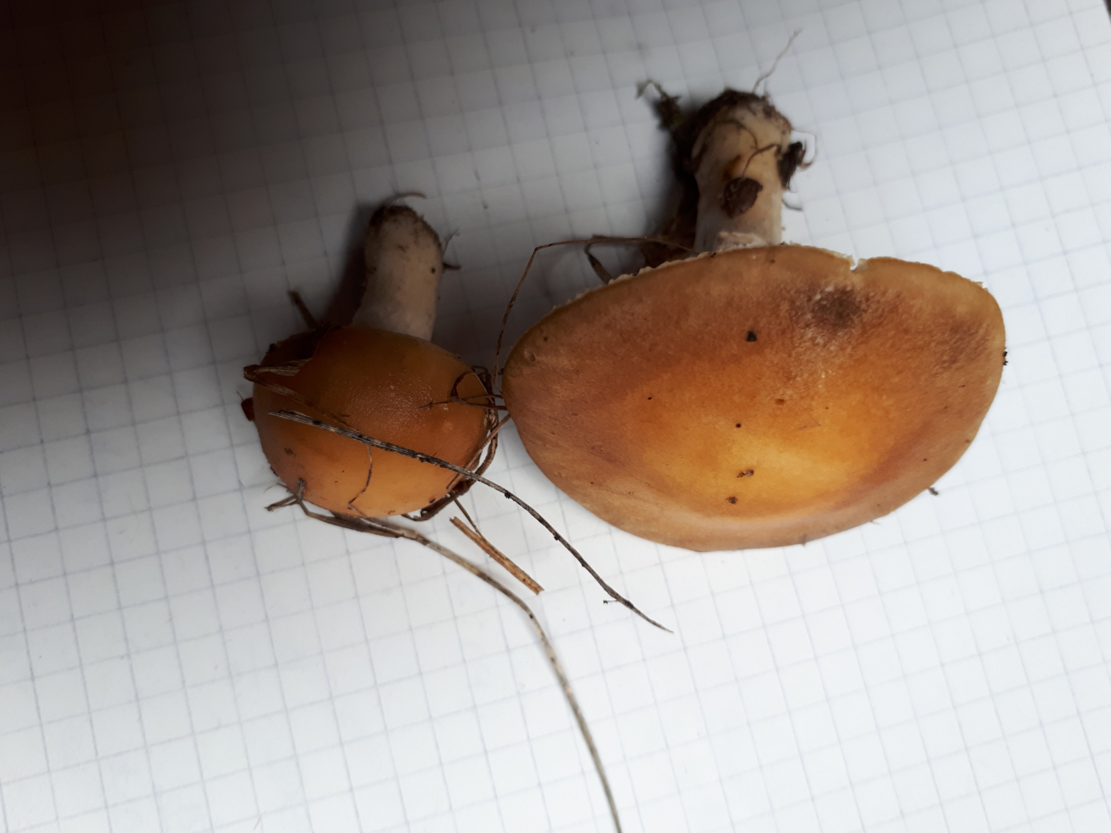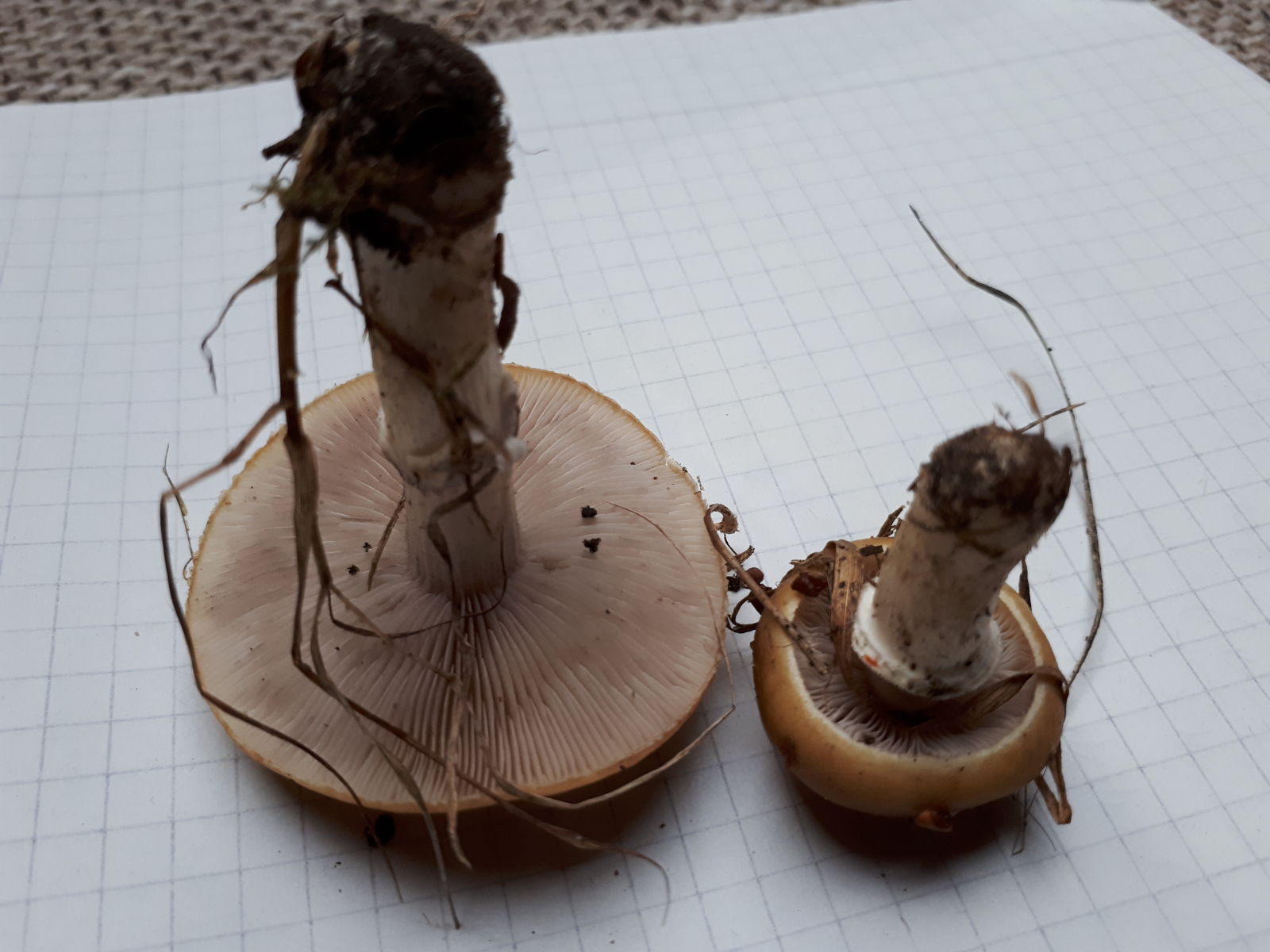gestern beim Laufen habe ich noch zwei Pilze gefunden, die mich etwas ratlos lassen.