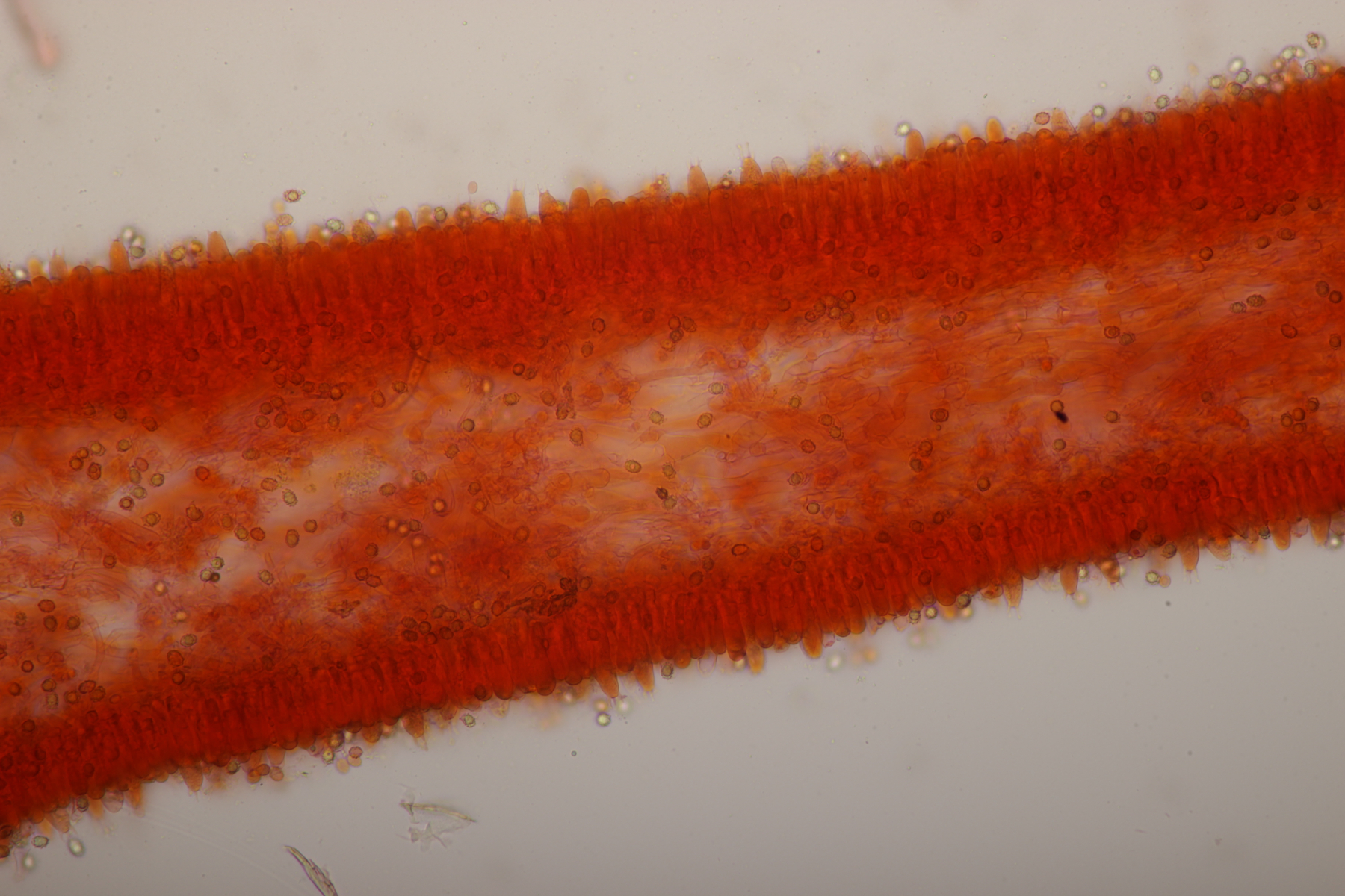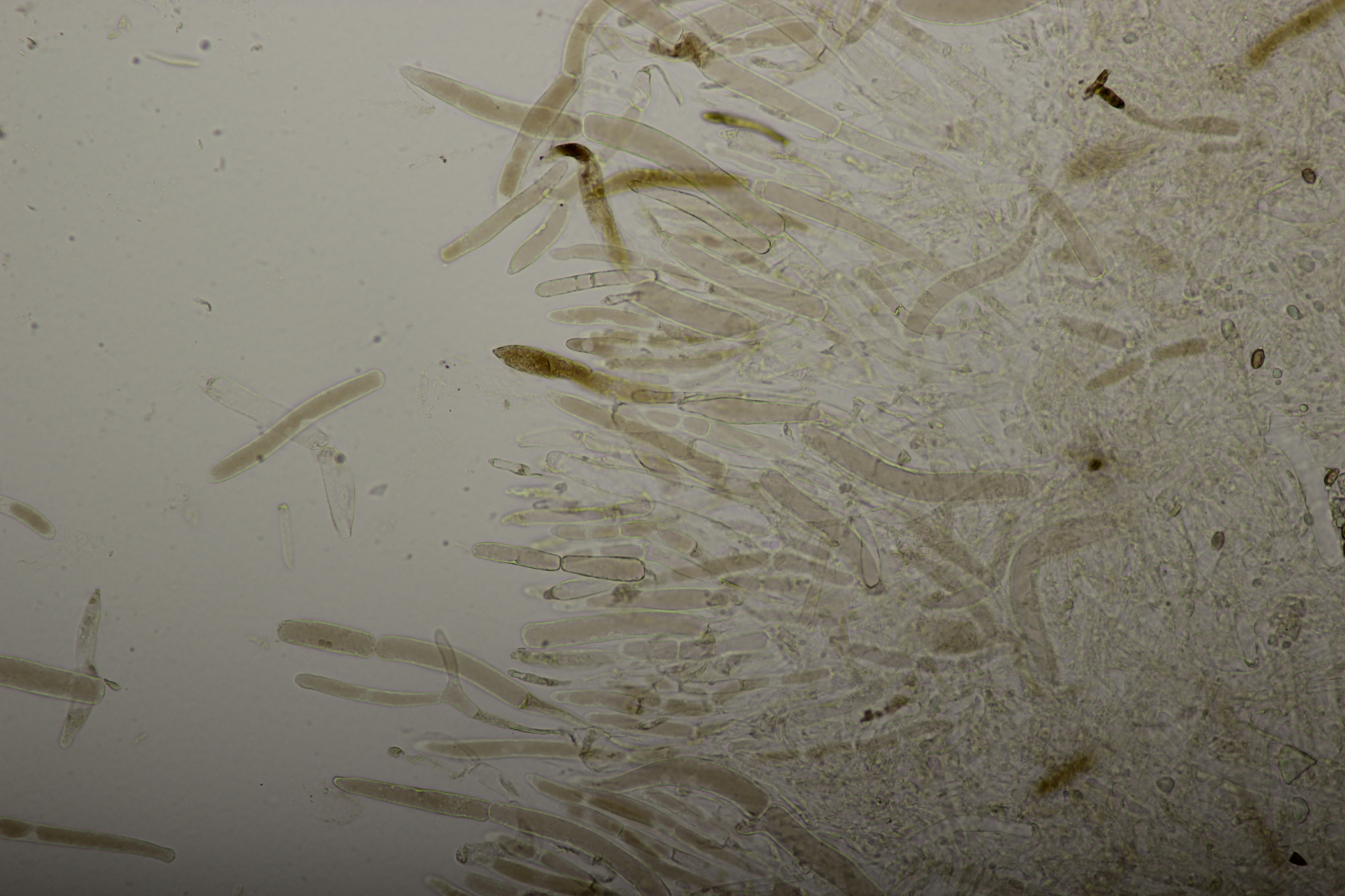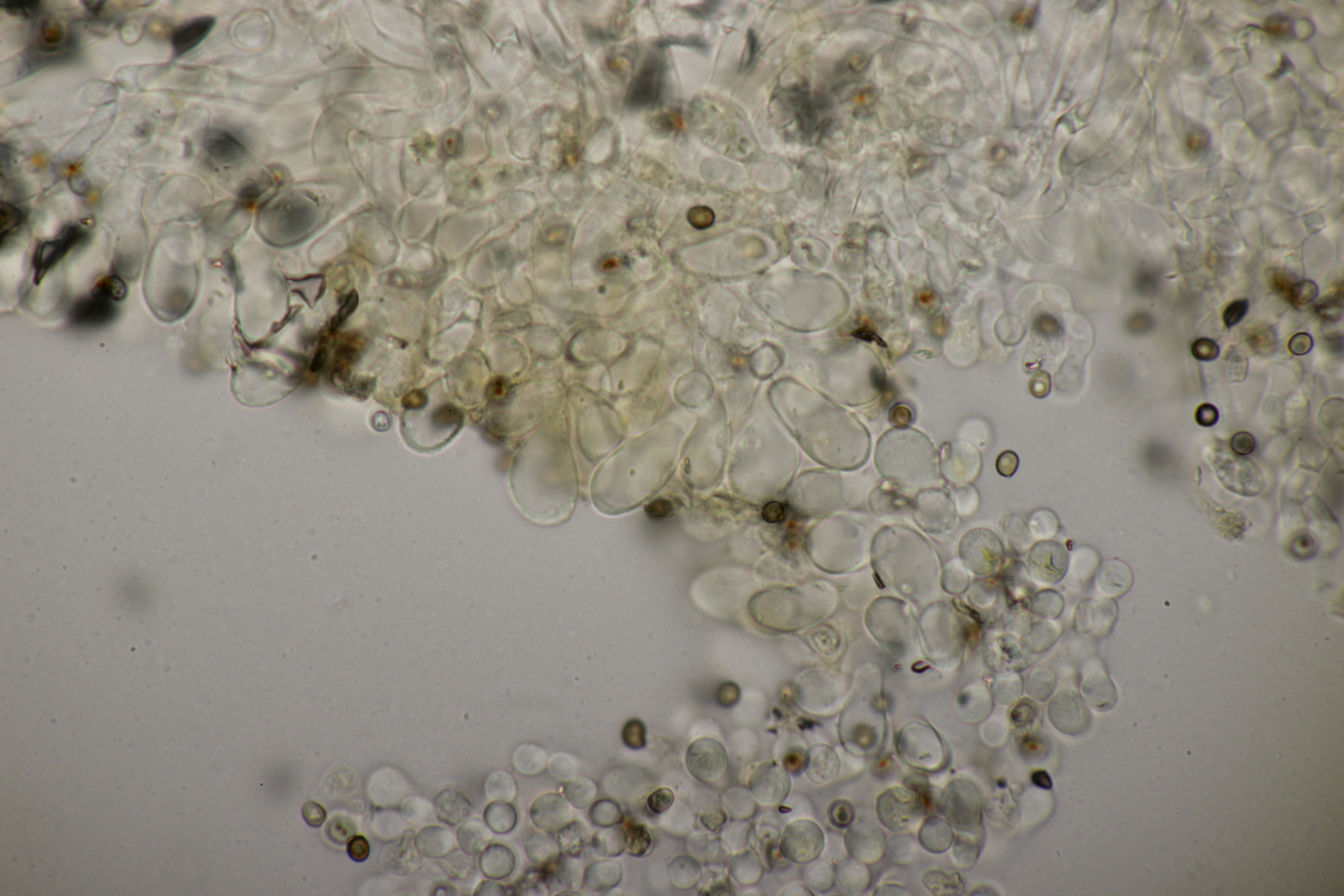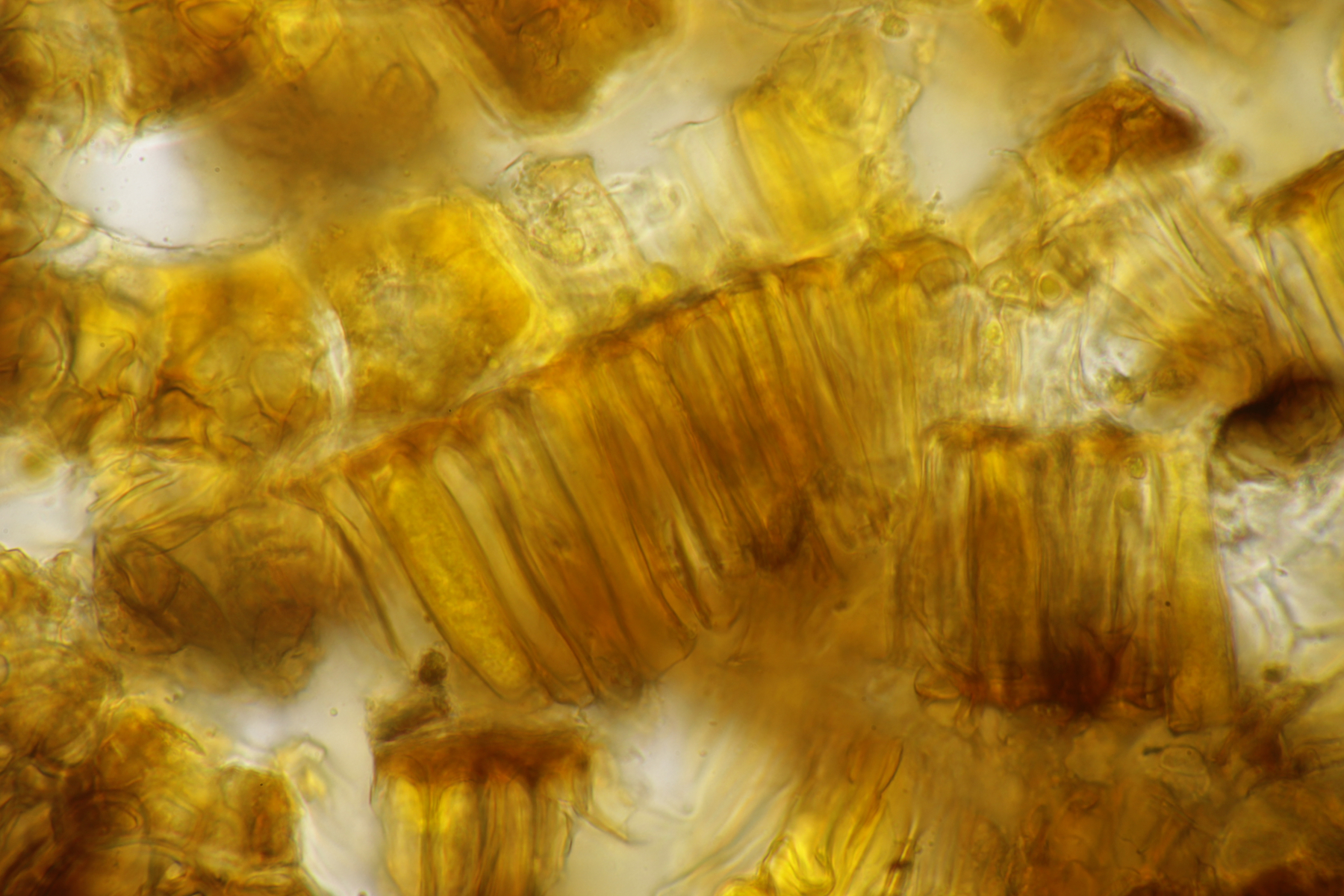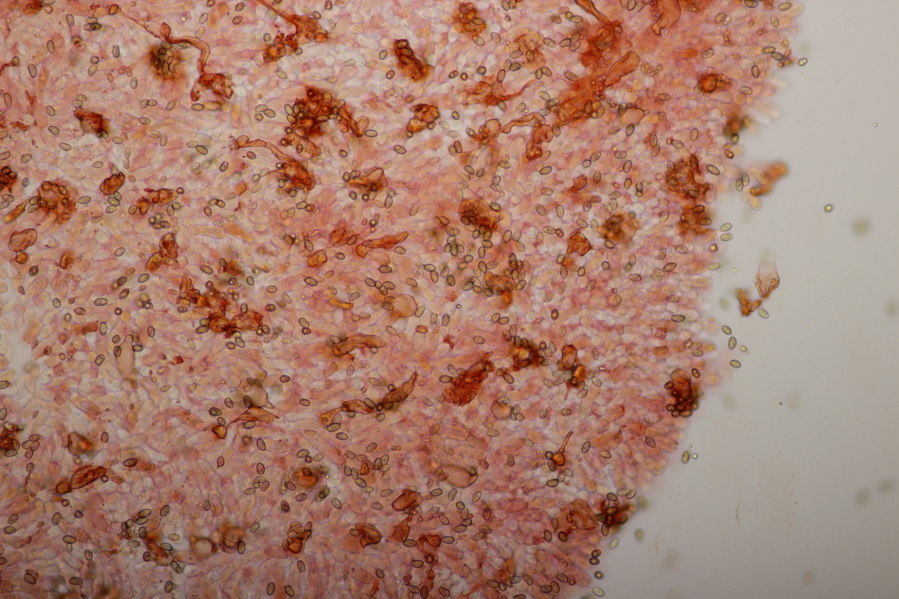 11. Leccinum scabrum. Keine Verfärbung im Fleisch sichtbar. Sporengröße (16.9+-1.0) µm x (5.0+-0.2) µm, Q=3.4+-0.2