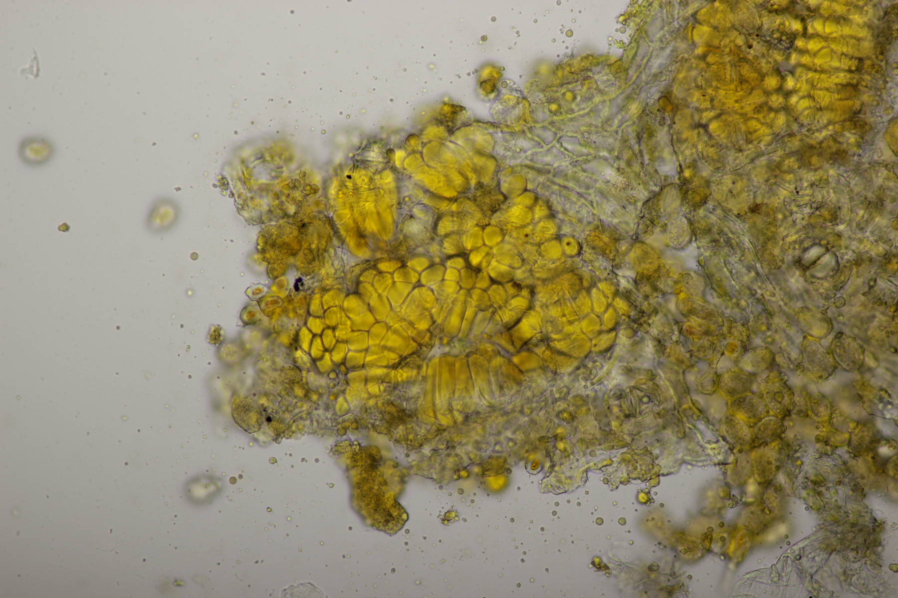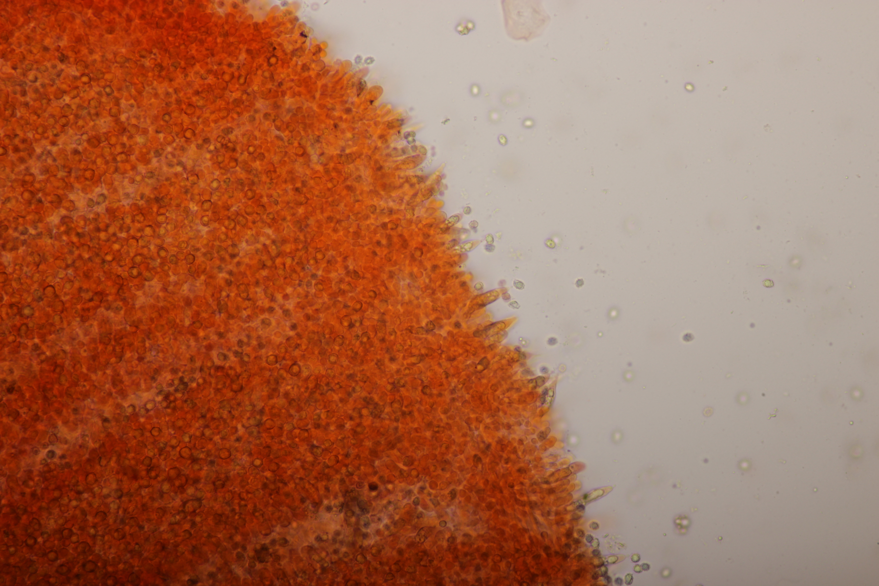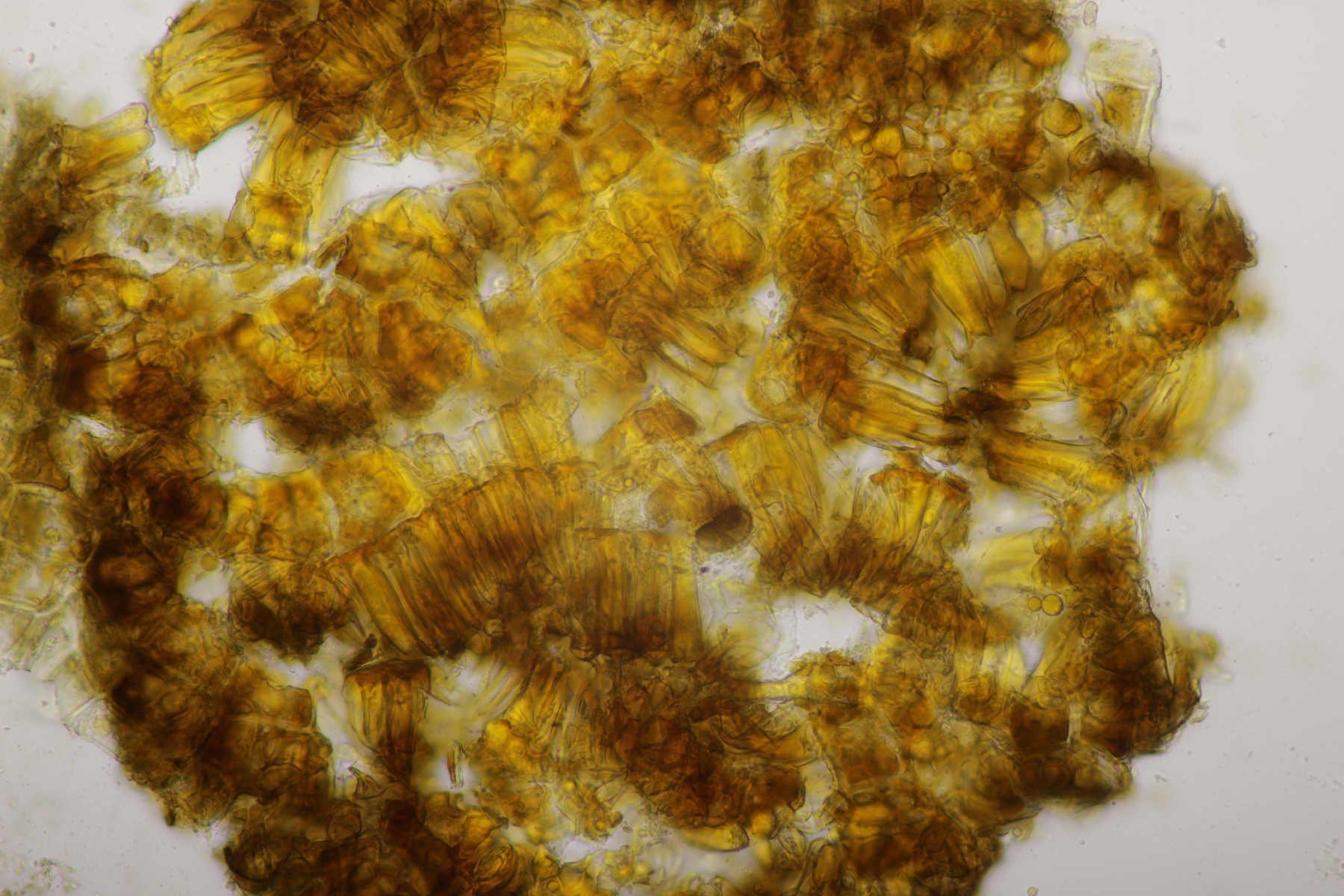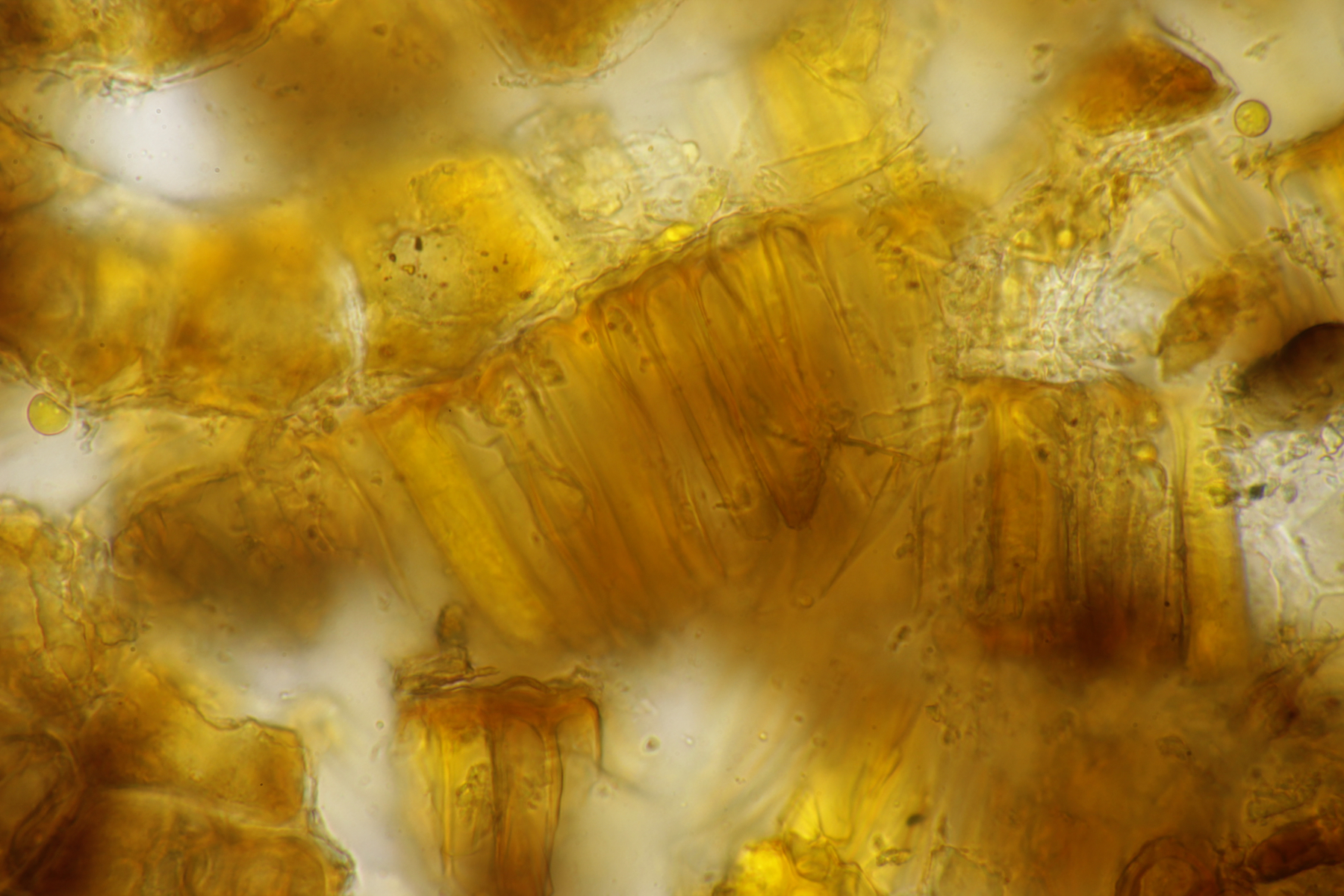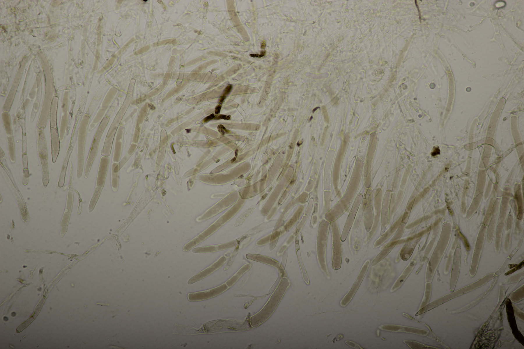 11. Leccinum scabrum. Keine Verfärbung im Fleisch sichtbar. Sporengröße (16.9+-1.0) µm x (5.0+-0.2) µm, Q=3.4+-0.2