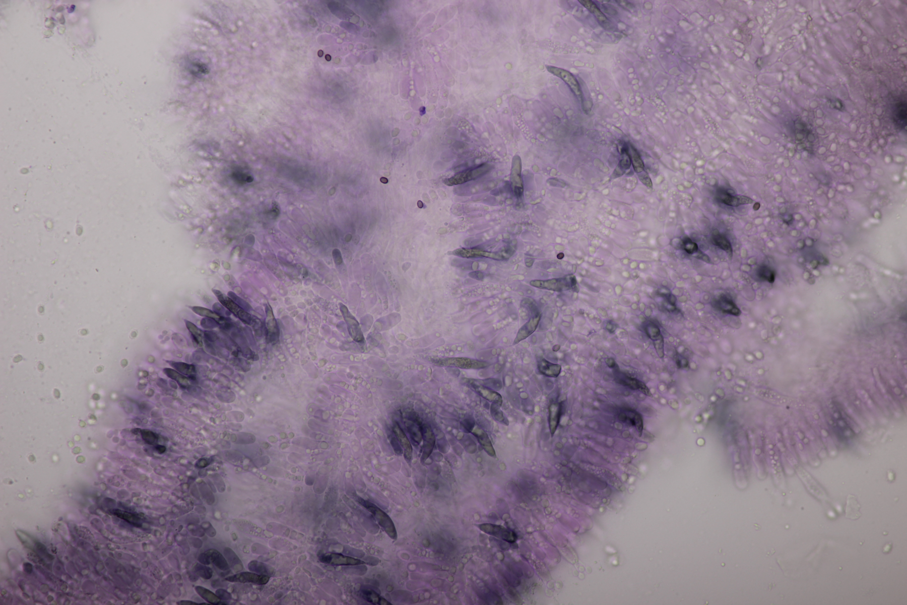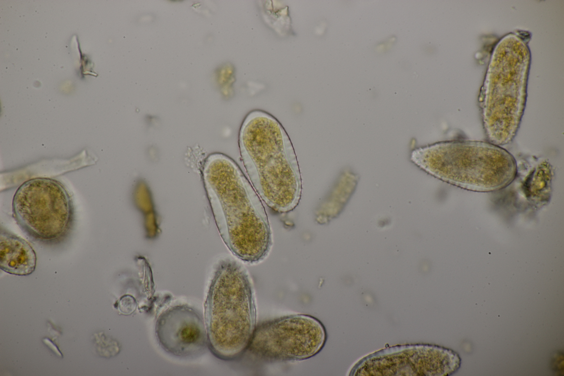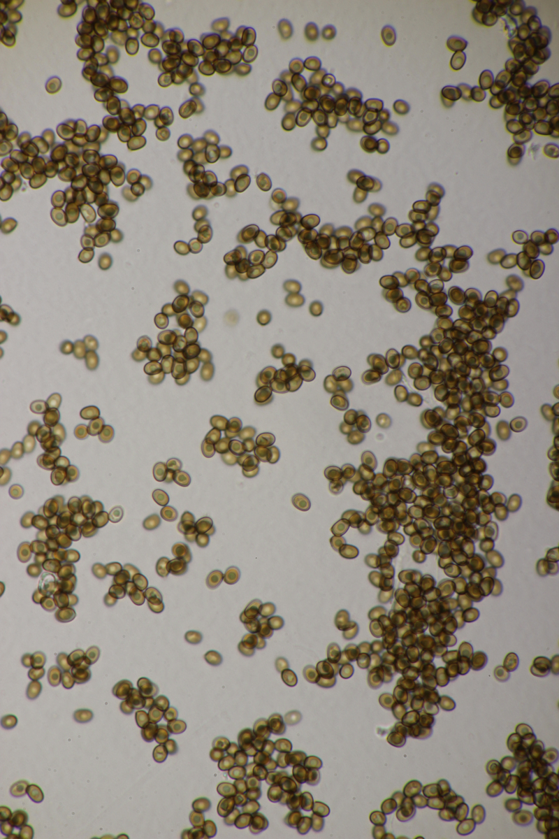 13. Stropharia caerulea. Sporengröße (8.6+-0.4) µm x (4.6+-0.2) µm, Q=1.9+-0.1