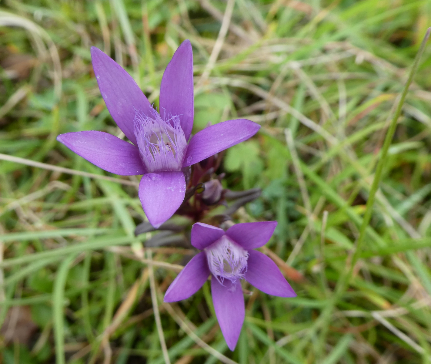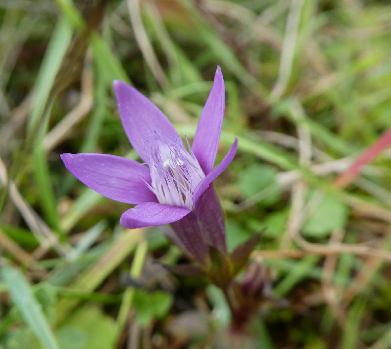 Zwischen dem Kranzenzian auch Gewöhnlicher Fransenenzian (Gentianopsis ciliata)