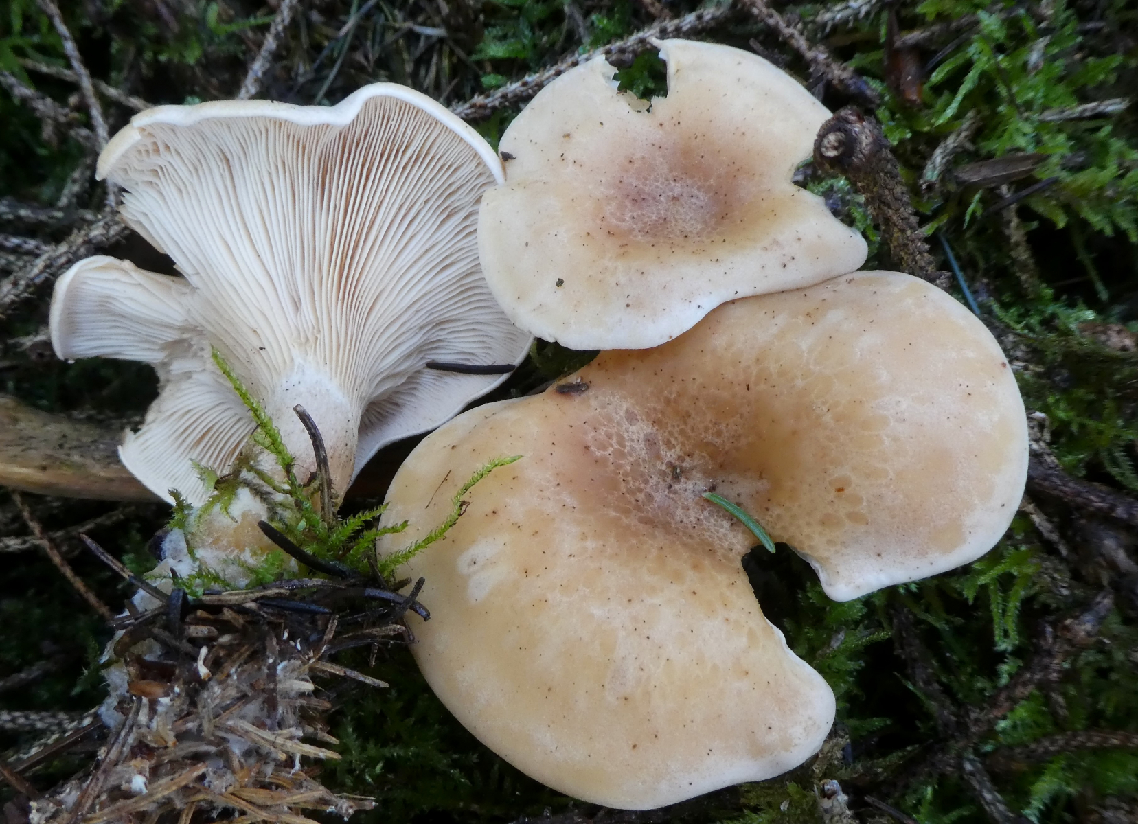 Die hier wuchsen gleich daneben und ich glaube, dies hier war der Wasserfleckiger Trichterling (Lepista gilva)