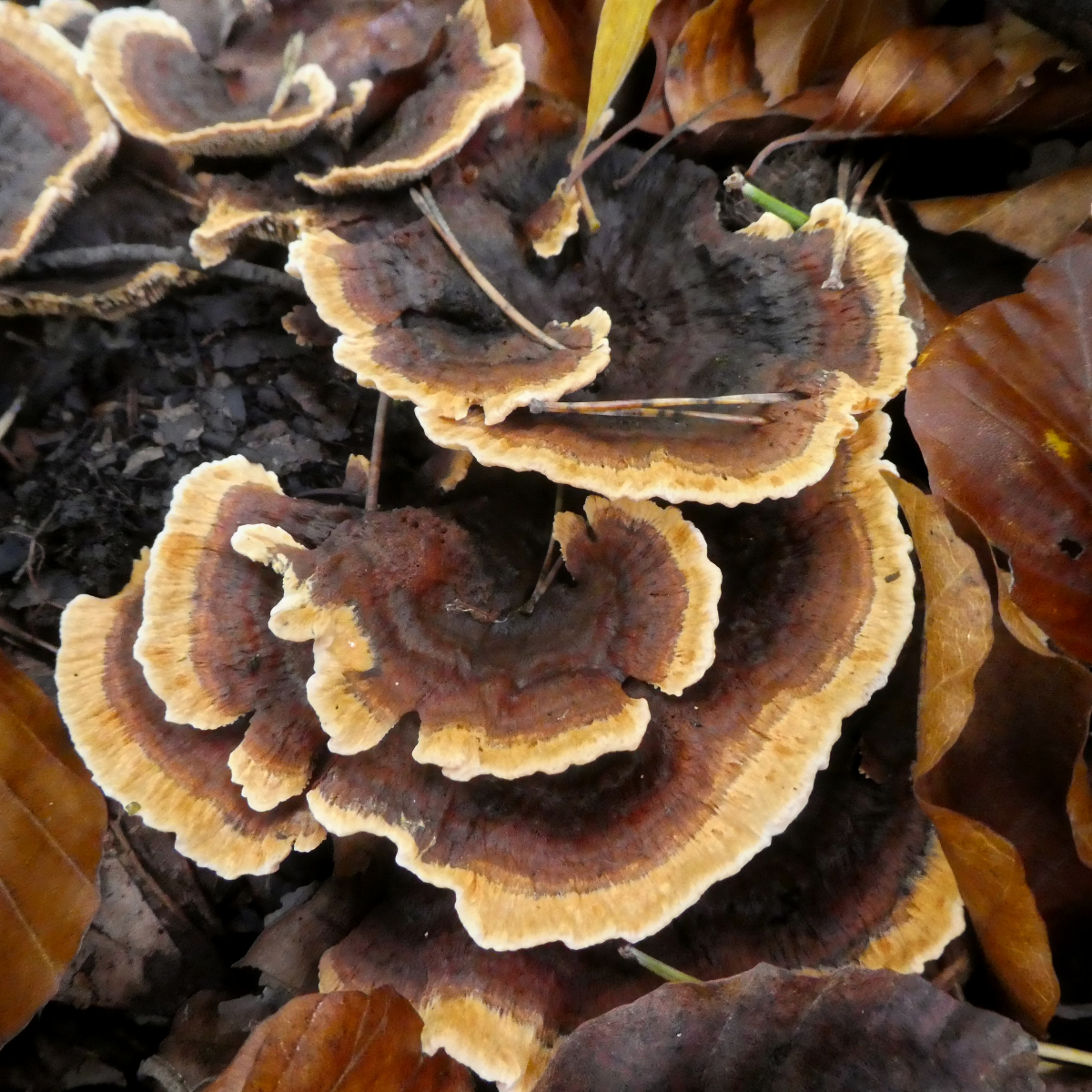 Auf dem Rückweg durch den Wald - Cortinarien ohne Ende. Hier war das Tageslicht schon fast verschwunden aber ich konnte nicht anders als mir auch diese anzusehen.