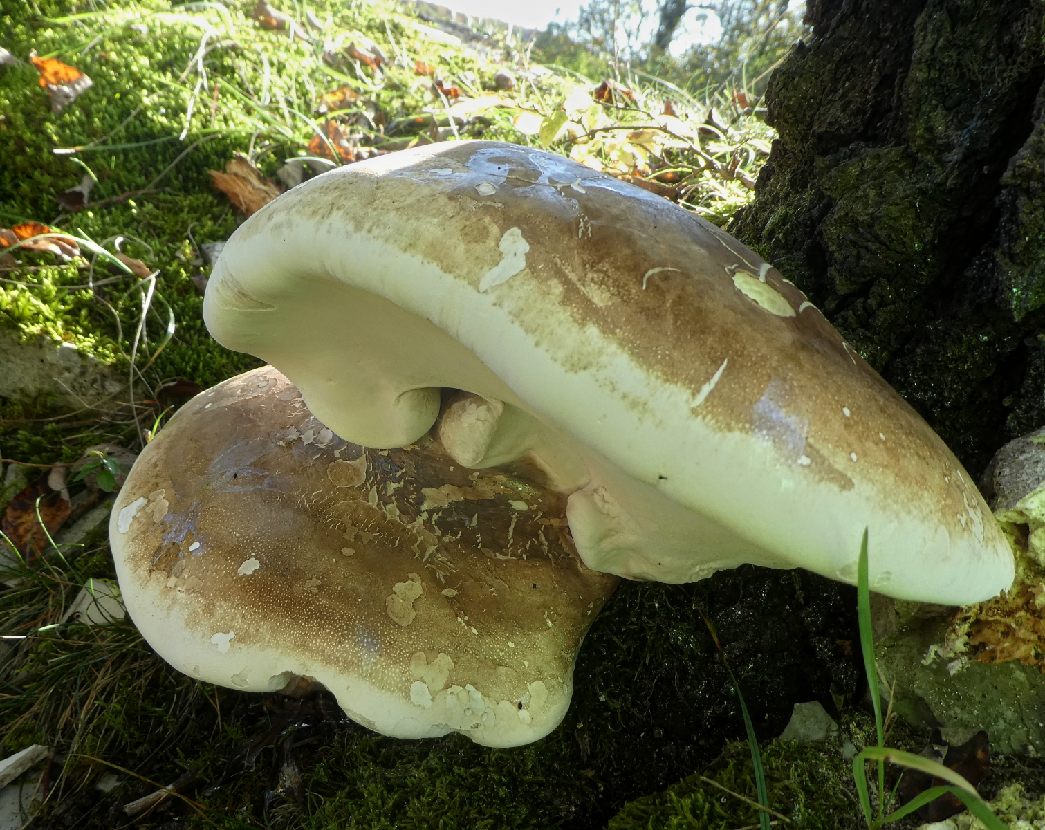 Es gab Cortinarien, Reizker, Stäublinge, Ringlose Butterpilze, und, und, und ... und diese hier. Allerdings wuchsen da zwei ähnliche aber dennoch verschiedene Ritterlinge nebeneinander und jetzt habe ich keine Ahnung welche dies hier sein könnten - vielleicht der Orangeroter Ritterling (Tricholoma aurantium)?
