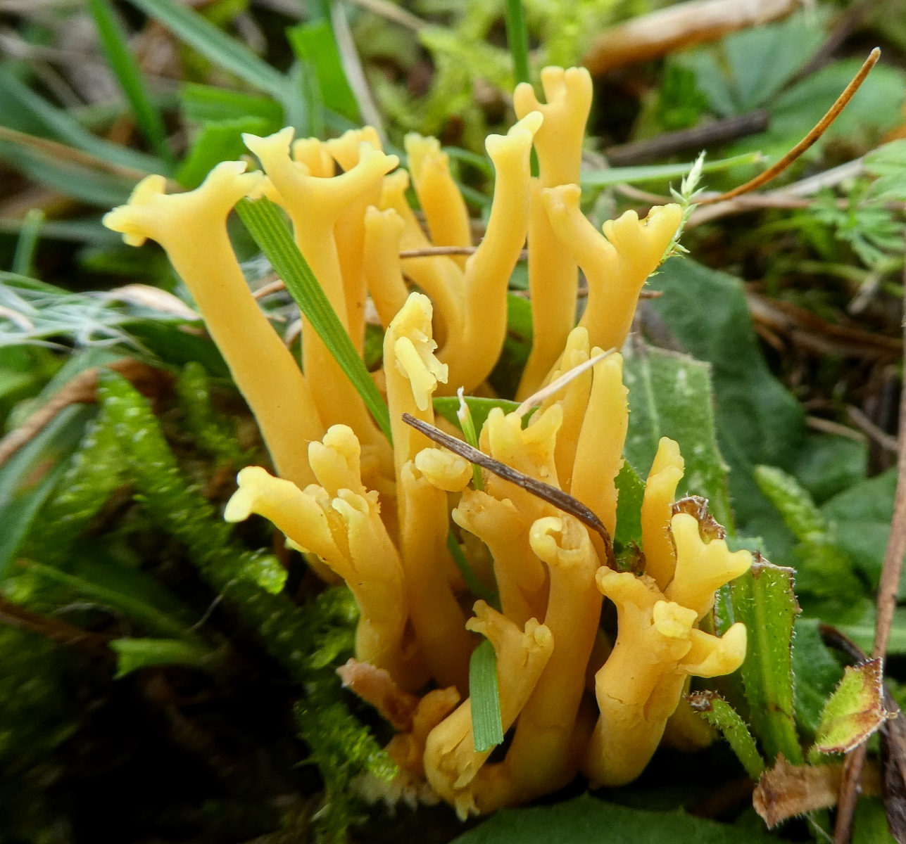 Tja ... Vielleicht auch entweder Clavulinopsis helvola (Goldgelbe Wiesenkoralle) oder Clavulinopsis laeticolor (Schöne Wiesenkeule)?