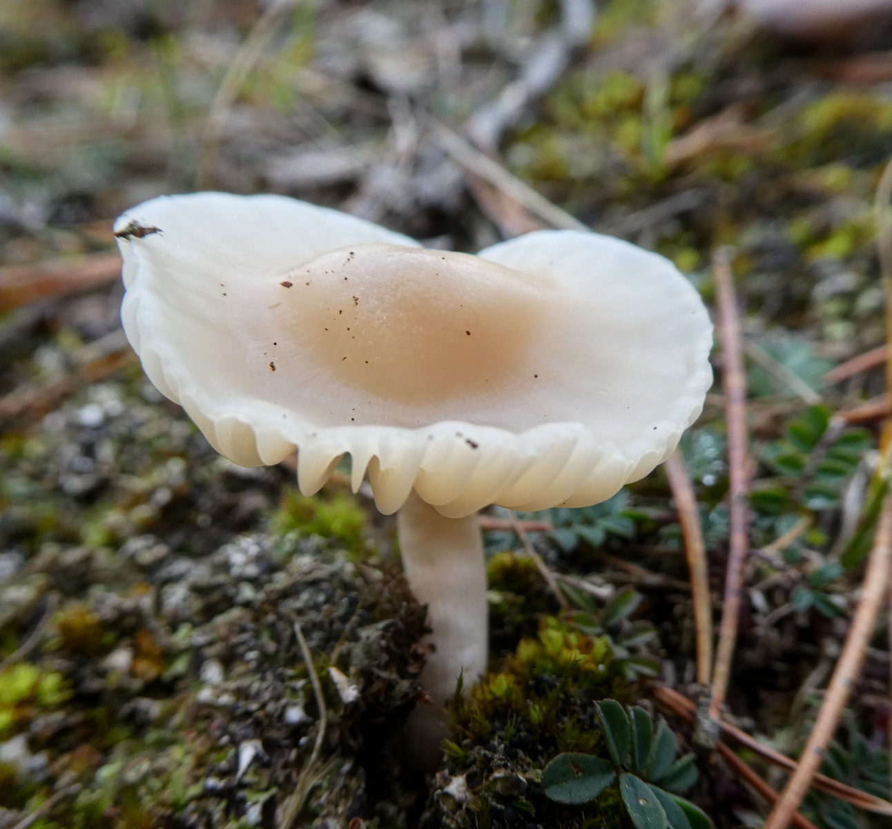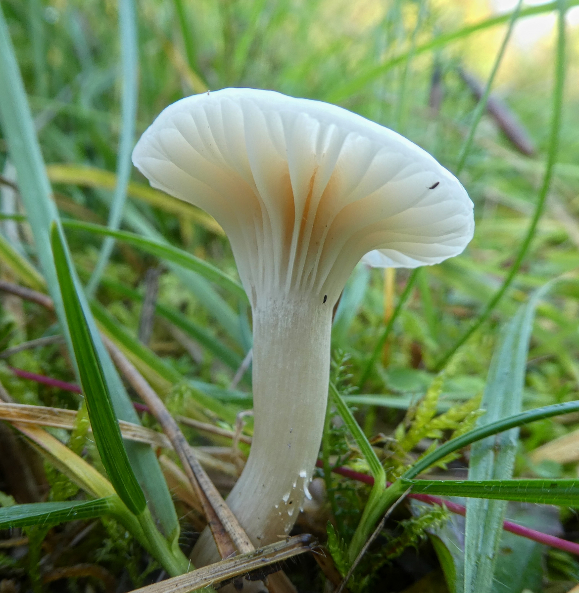 Vielleicht der Ockerblasse Jungfern-Ellerling (Hygrocybe virginea var. ochraceopallida)?
