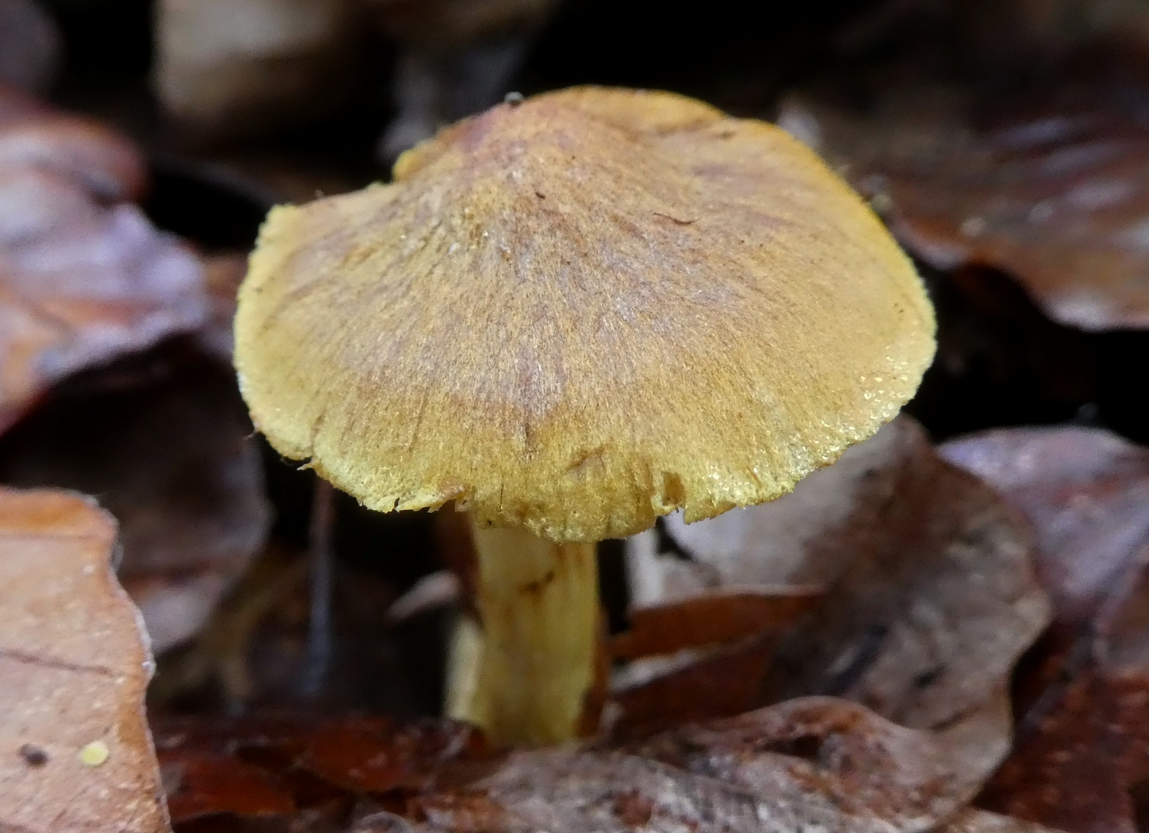 Es wurde dunkel und ich musste zurück. Auch auf dem Rückweg immer wieder die unterschiedlichsten Cortinarien. Der hier könnte einer aus der Sektion Calochrous sein aber da bin ich mir nicht sicher.