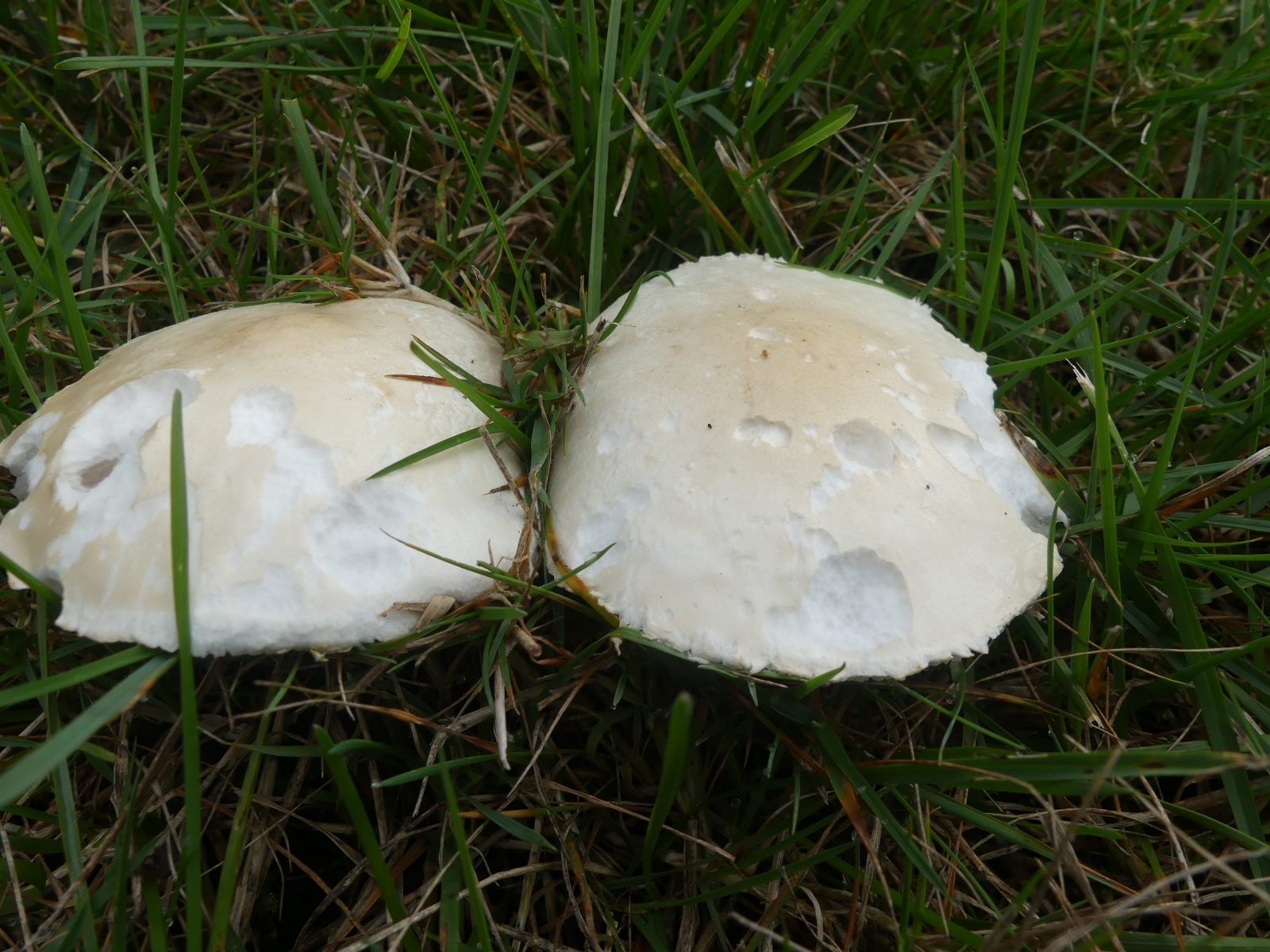 Beim ersten passt die Hälfte des Fruchtkörpers zum Gemeinen Egerlingsschirmling (Leucoagaricus leucothites). Ob die andere Hälfte auch dazu passt, kann ich nicht beurteilen, weil die ja fehlt bzw. auf den Bildern nicht zu sehen ist. Je nach dem, wie die aussieht, kanns natürlich auch was Anderes sein.