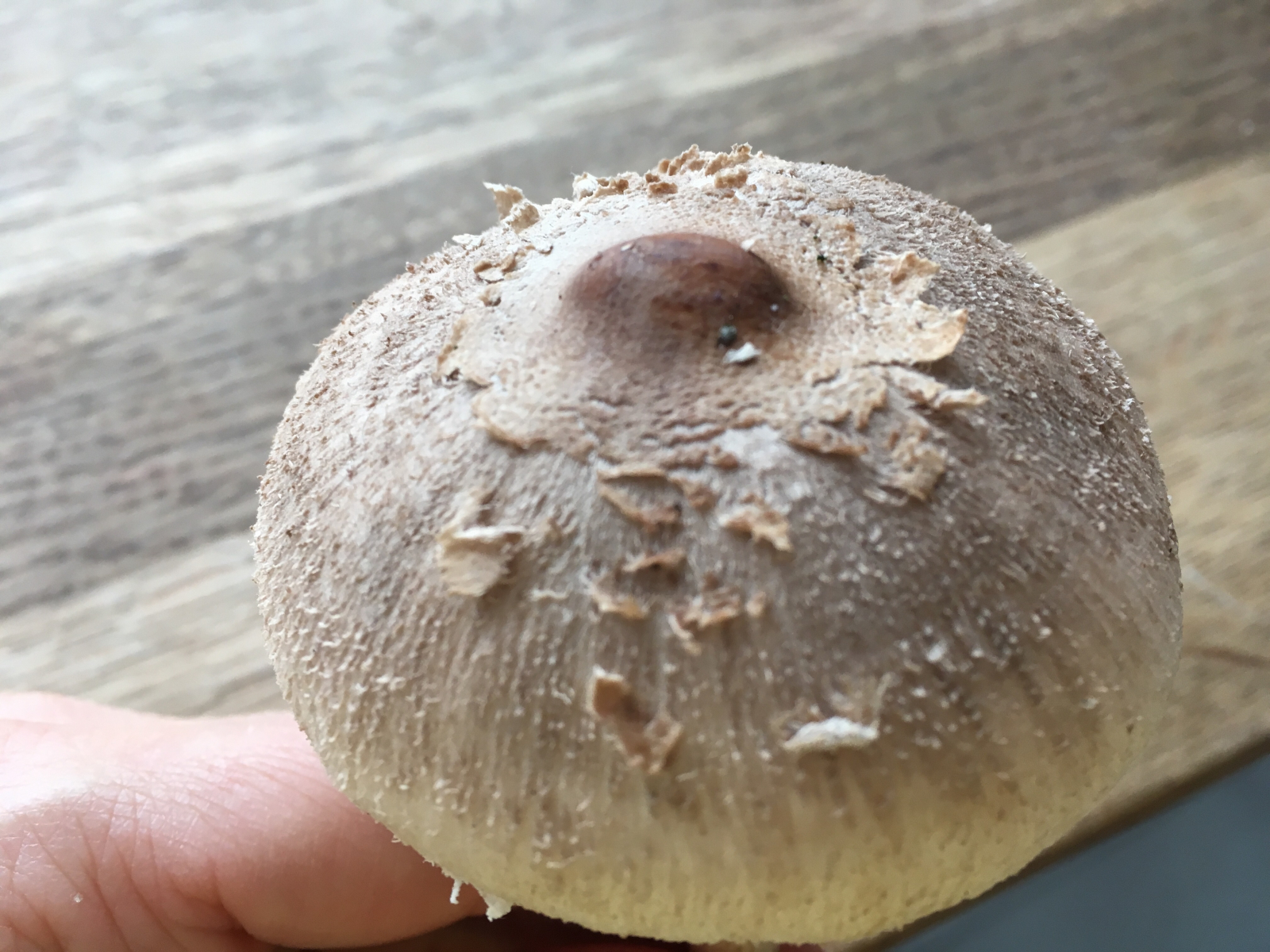 Bei diesem Exemplar bin ich mir aber nicht ganz sicher ob es sich um einen jungen Parasol handelt. Es gab bestimmt 20 auf eine Selle, also habe ich mir erlaubt einen mitzunehmen um auch die Unterseite betrachten zu können. Haben Parasole normalerweise nicht mehr großflächige Schuppen auf dem Hut?