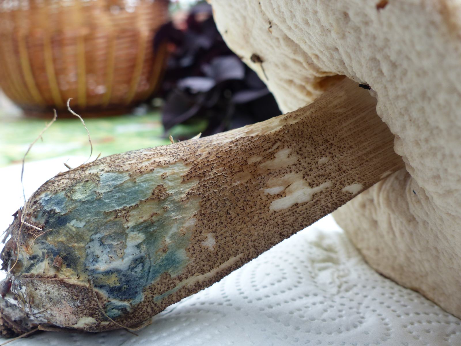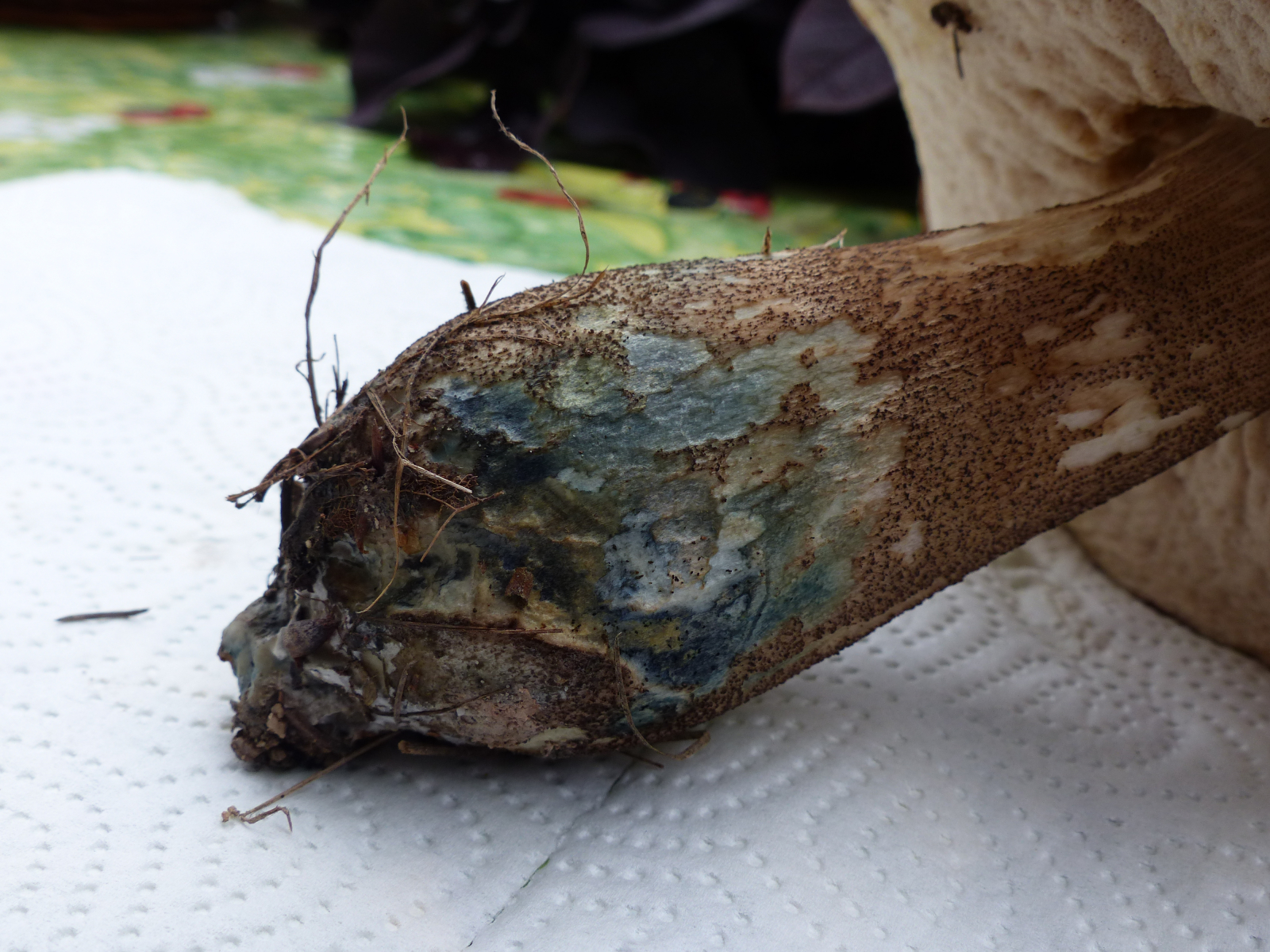 Stielbasis: bläulich, keulig und rund