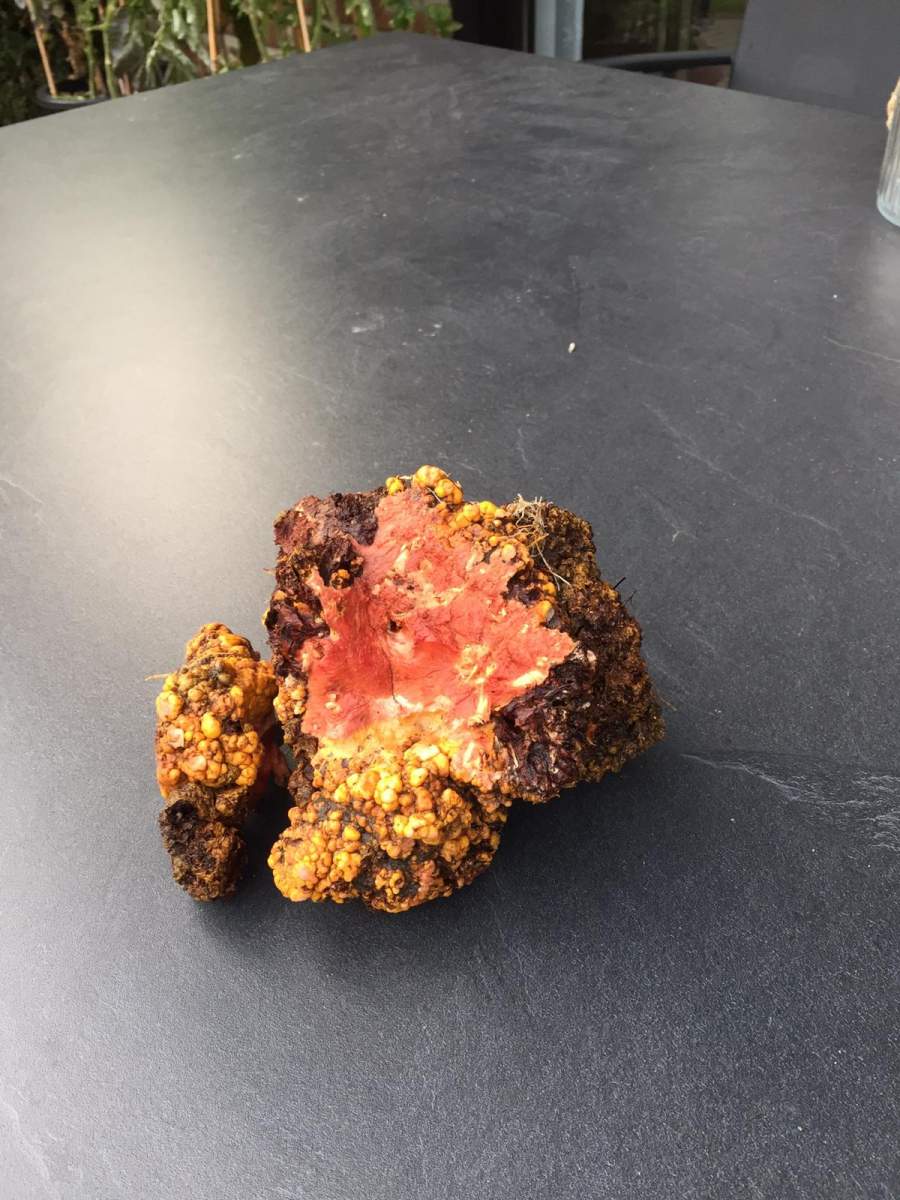 Also riecht wie eine Rübe und es lässt sich mit den Fingernägeln eindrücken wurde im Boden unter einem Strauch gefunden.