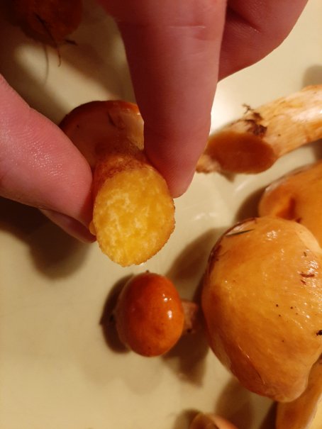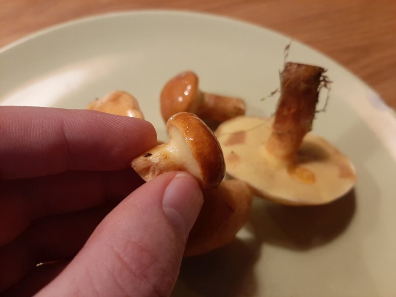 Auch diese Exemplare befanden sich natürlich bei einer großen Lärche und sie sind nach dem Regenwetter recht schleimig. Sind es Lärchen/Gold Röhrlinge? ![]()