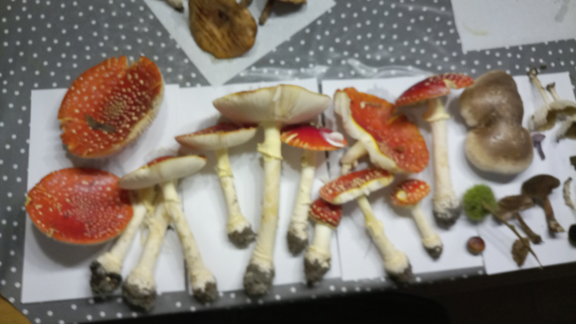 Was ich nicht verstehe: Wozu um Himmels Willen schneidest du ca. 13 Fliegenpilze ab, die ja nach deinen eigenen Angaben "einfach" sind, und von denen du dann ja wohl auch weißt, daß sie giftig sind. Ich hoffe, du hast damit keinen Blödsinn vor, denn zum Zeigen/Einstellen/Bestimmen reicht einer, maximal 2 Stück, 1x groß, 1x klein. Der Rest hätte doch friedlich stehenbleiben und aussporen können!