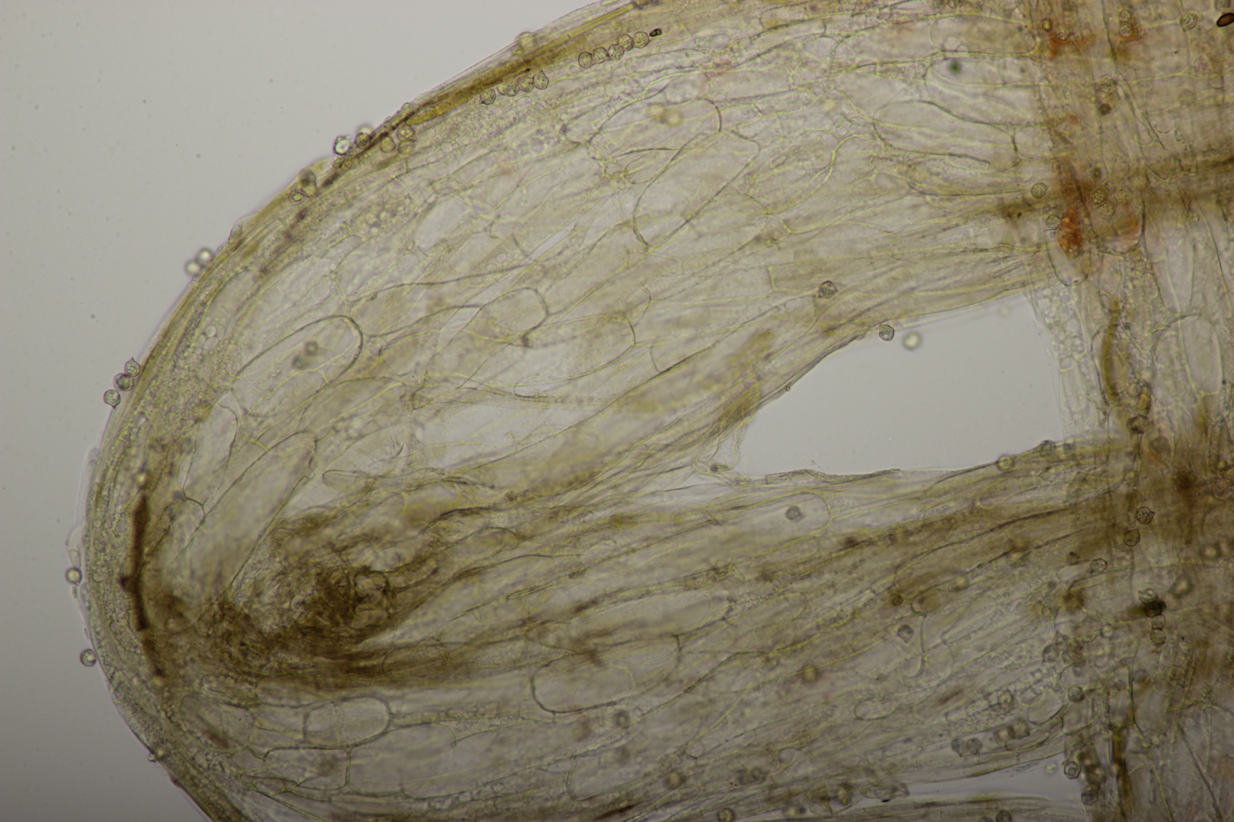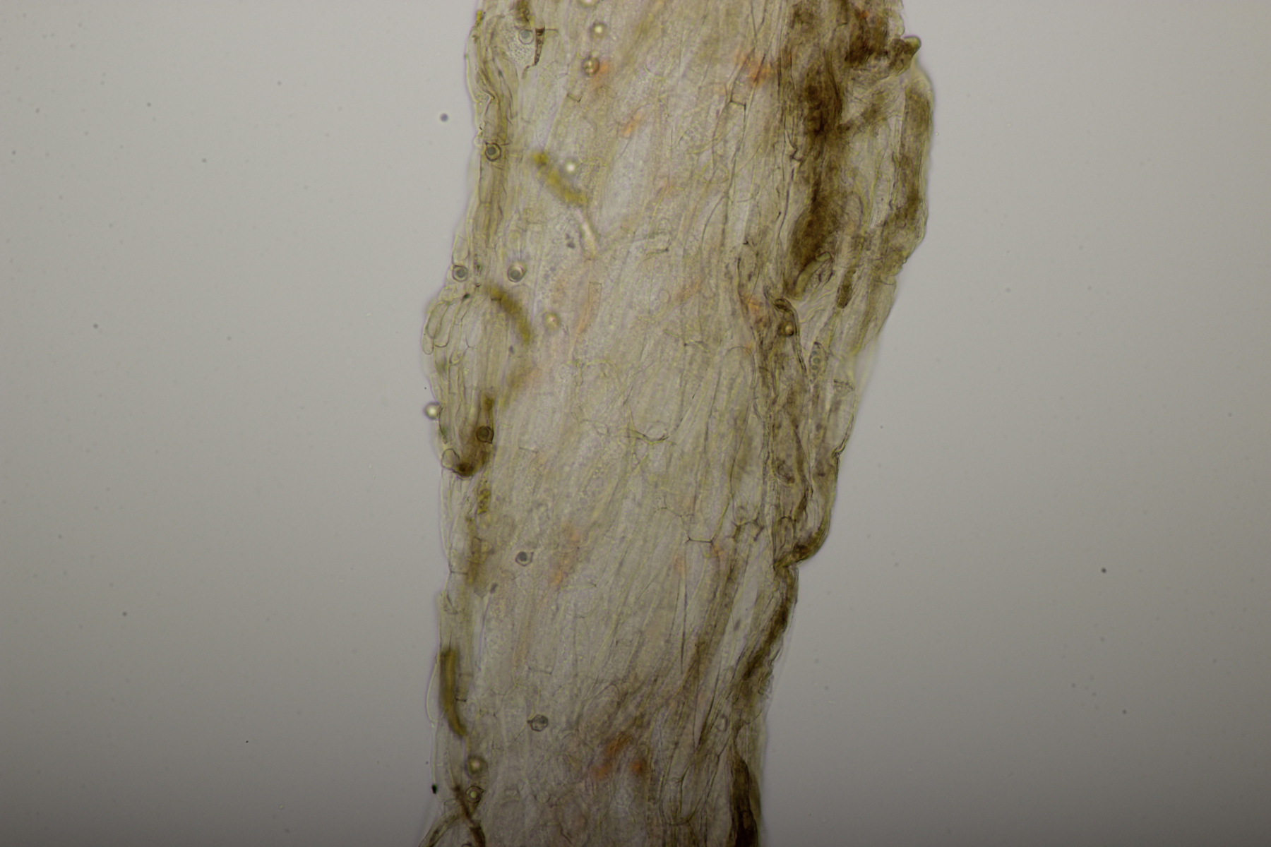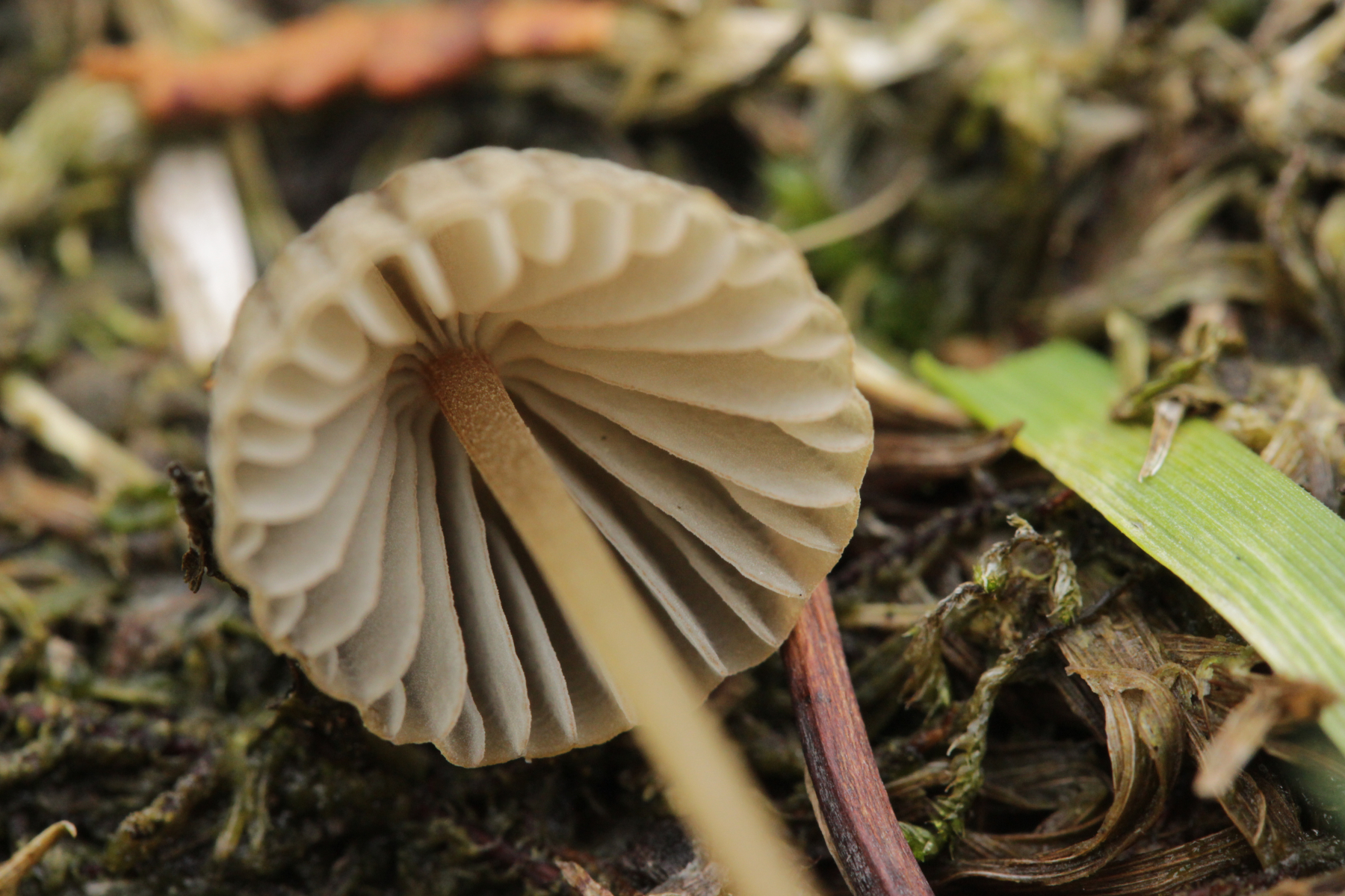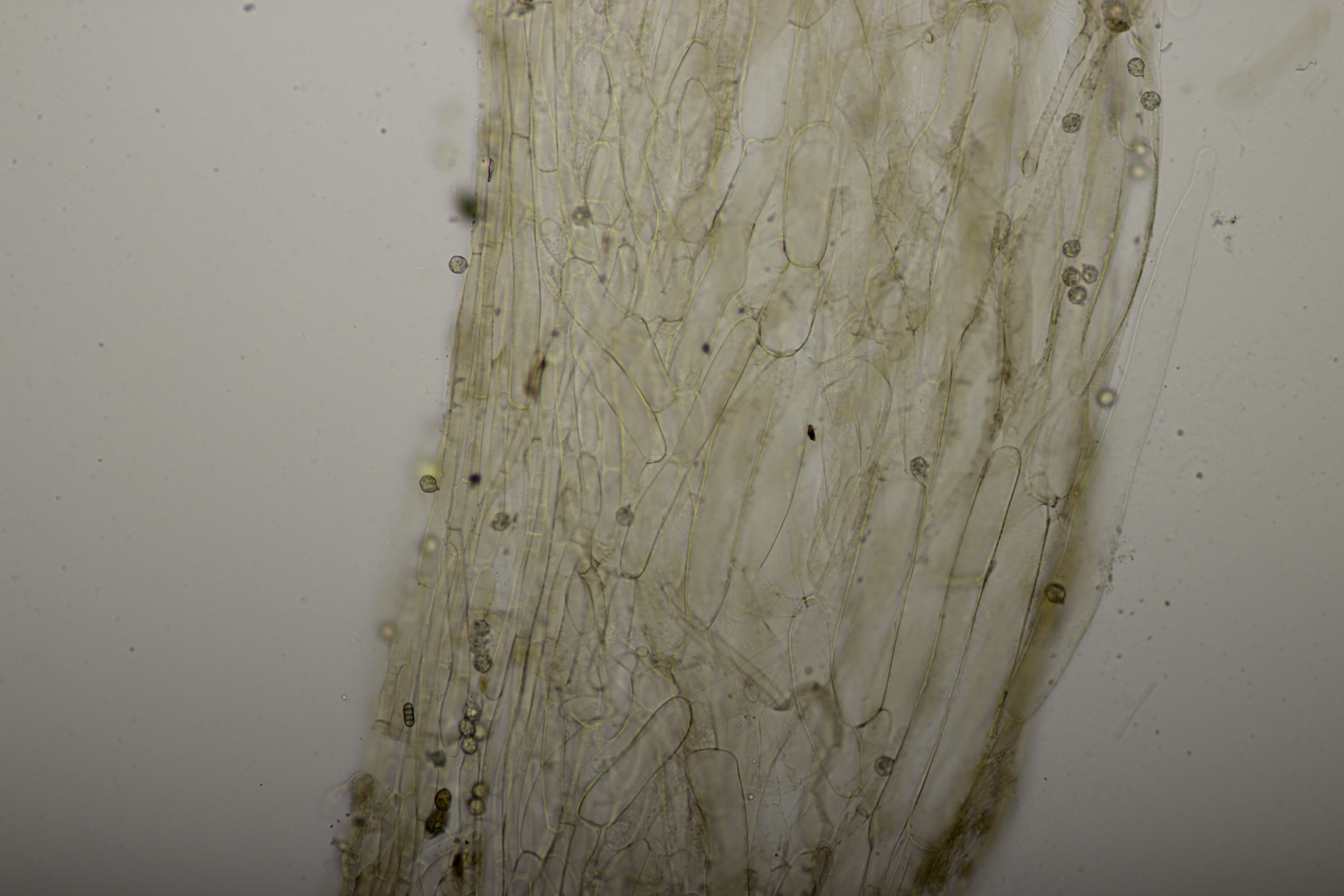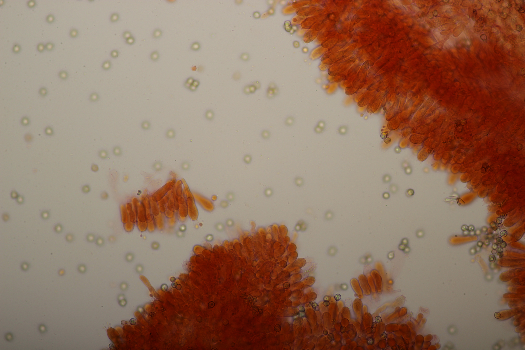 5. Ein kleiner weißer Pilz auf den ich mir aktuell noch keinen Reim machen kann. Mikroskopisch gab er außer den sehr kleinen Sporen auch wenig her: Basidien 4-sporig, Schnallen vorhanden, Zystiden waren nicht zu finden. Hat da jemand eine Idee?