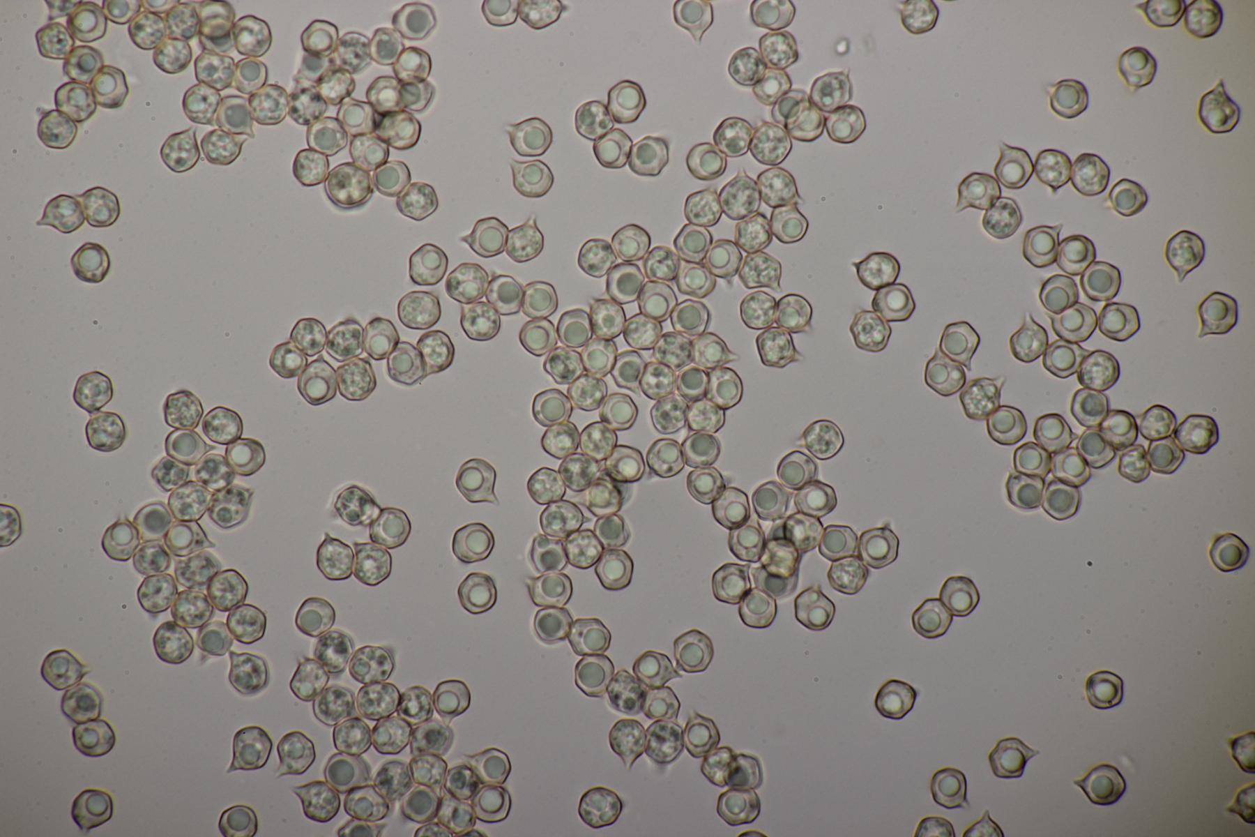 Sporen (7.6+-0.3) x (6.5+-0.3) µm