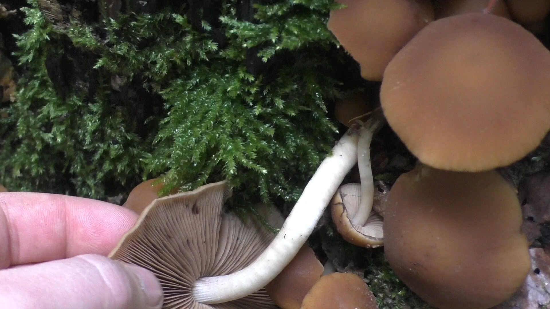• Gestern habe ich neben unzähligen mit Stockschwämmchen, Grünblättrigen, Rauchblättrigen und Ziegelroten Schwefelköpfen bewachsenen Baumstämmen auch diese Pilze an vier Laubholzstümpfen gefunden und sie als Weißstieliges Stockschwämmchen bestimmt. Liege ich richtig mit dieser Vermutung oder habe ich doch eine andere Art gefunden?