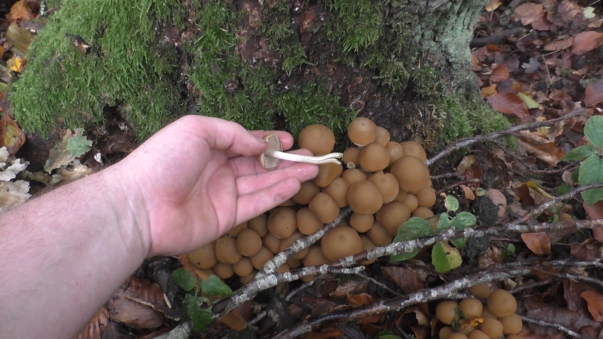 Gestern habe ich neben unzähligen mit Stockschwämmchen, Grünblättrigen, Rauchblättrigen und Ziegelroten Schwefelköpfen bewachsenen Baumstämmen auch diese Pilze an vier Laubholzstümpfen gefunden und sie als Weißstieliges Stockschwämmchen bestimmt. Liege ich richtig mit dieser Vermutung oder habe ich doch eine andere Art gefunden?