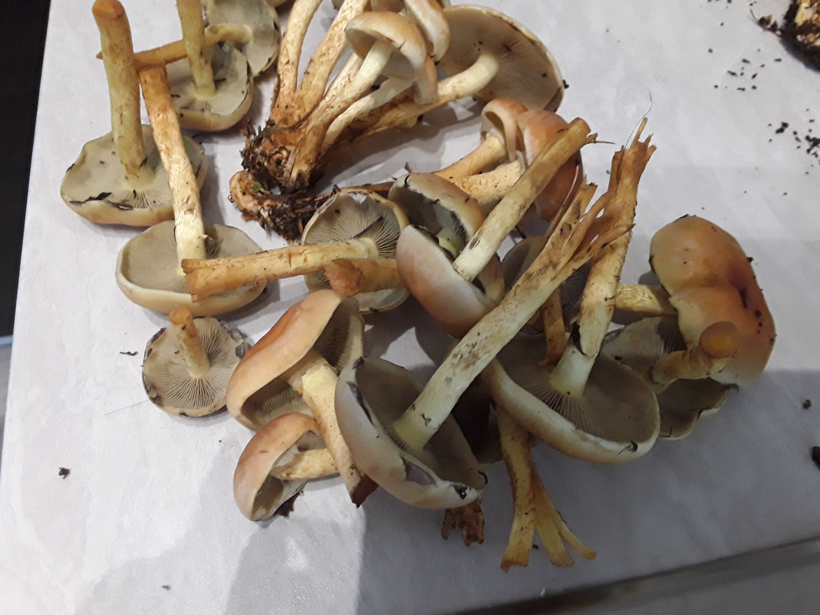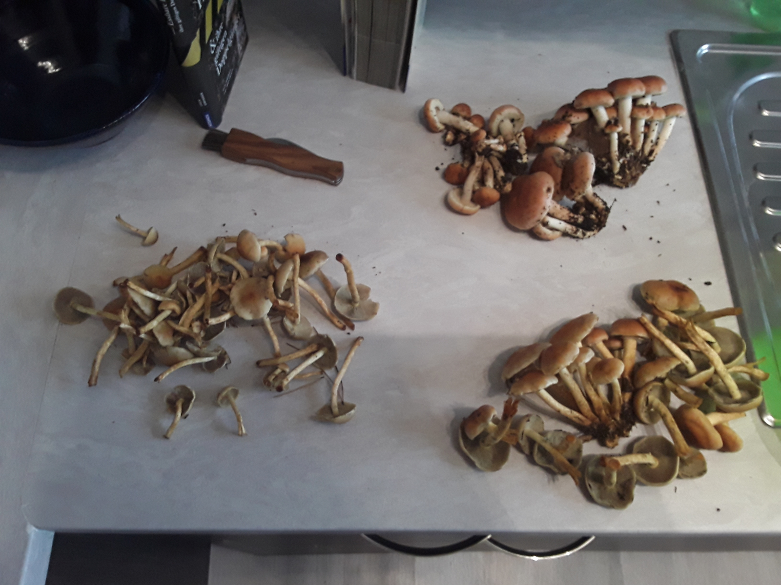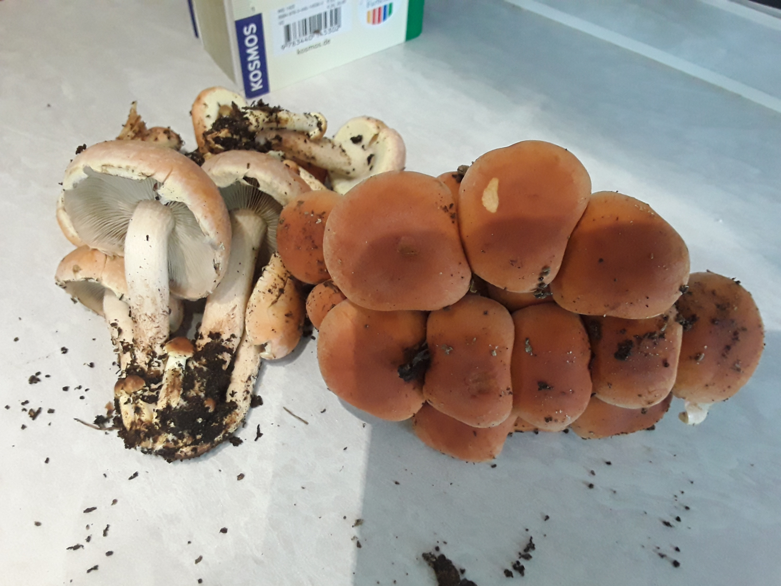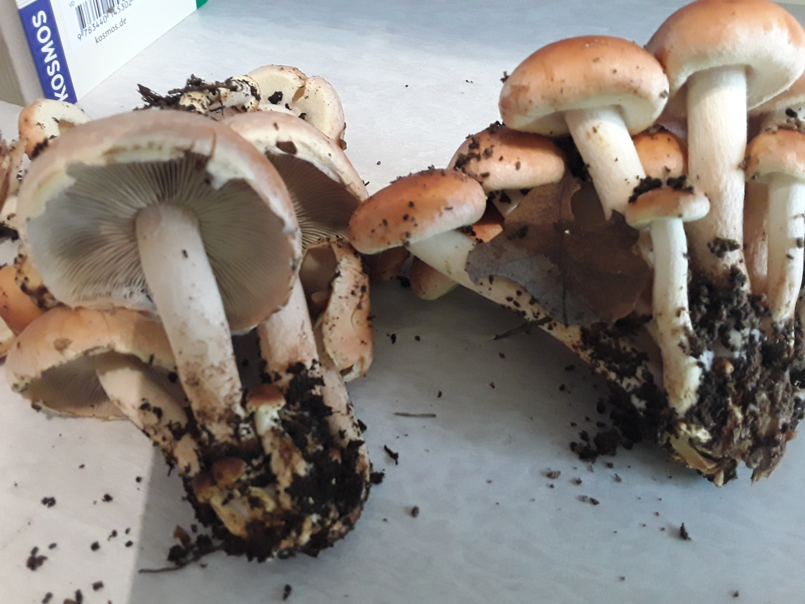 Jedenfalls finde ich nicht, dass das nach Hallimasch aussieht. Hätte tatsächlich eher in Richtung Stockschwämmchen überlegt. Aber ist halt auch nicht super zu erkennen da...