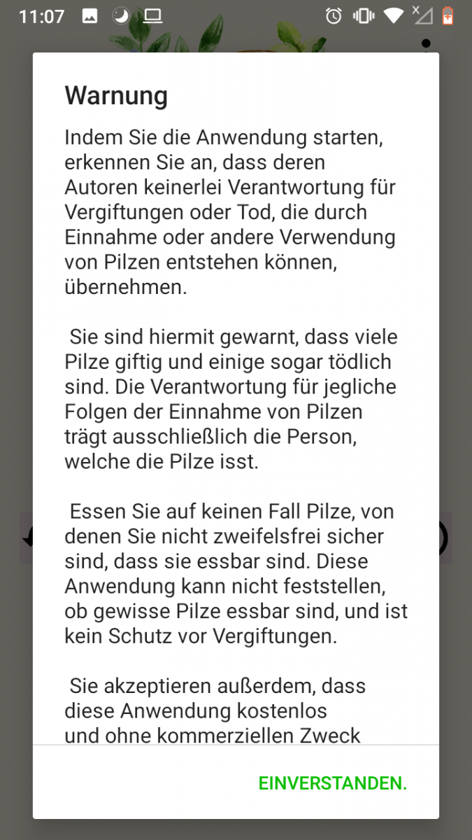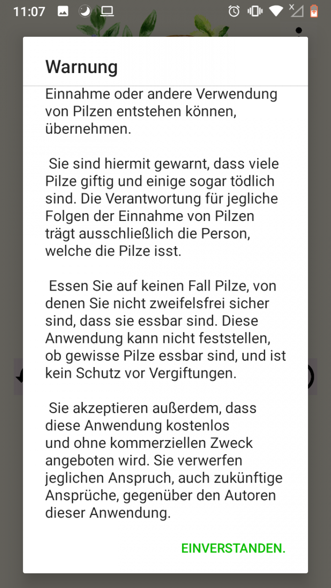 Und nein die App kann nicht riechen, die App sagt auch ganz deutlich, das die Pilzerkennung keine Verzehrempfehlung ist. (siehe Bild)